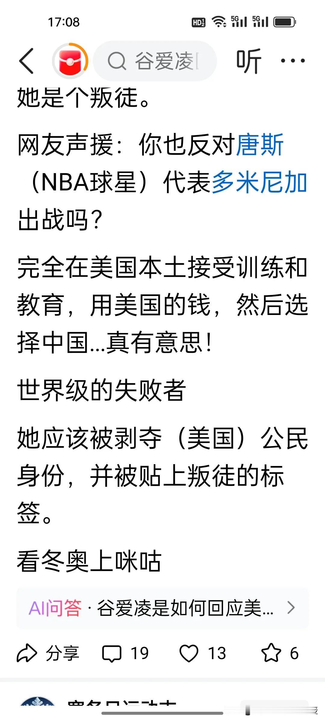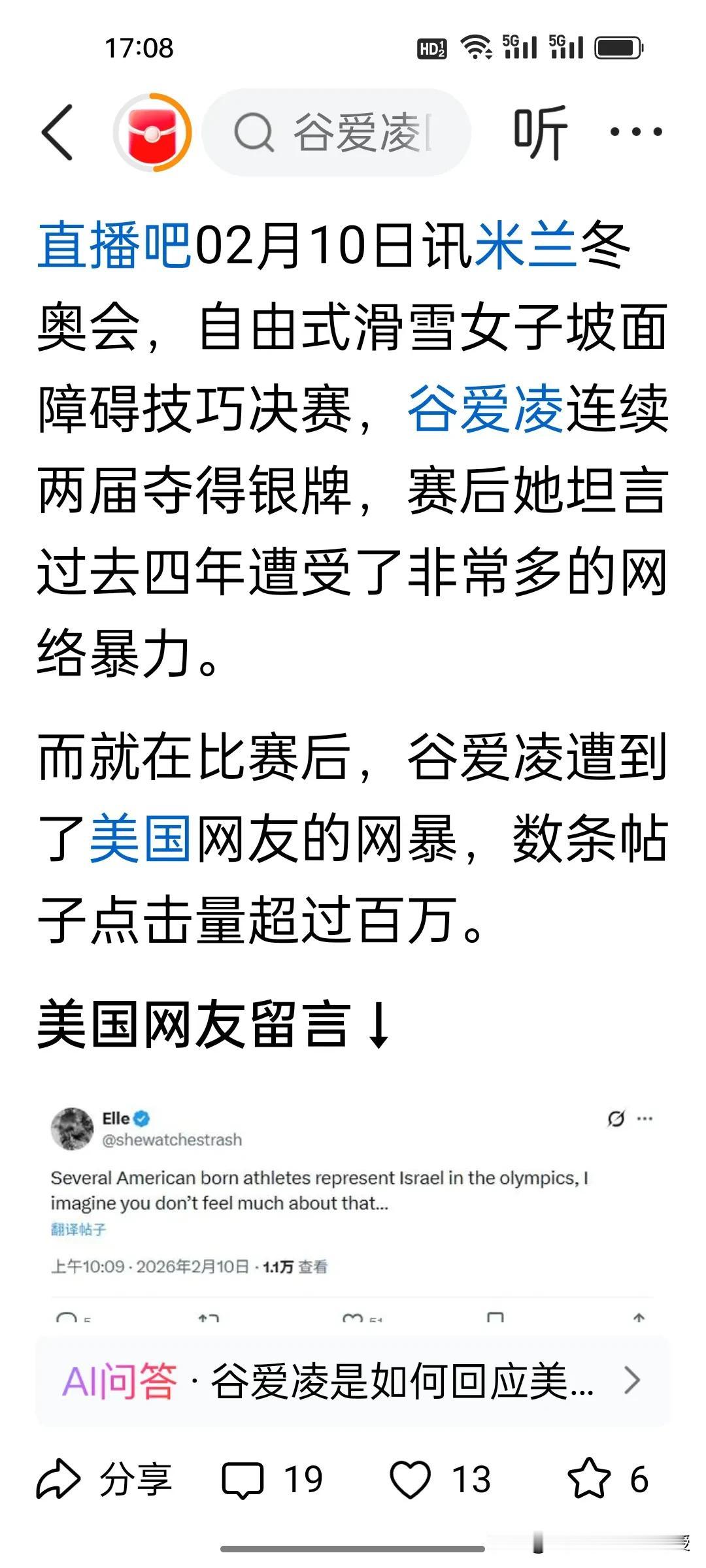 谷爱凌摘银又挨美国网友骂,双标网暴何时休? 米兰冬奥坡面障碍技巧决赛,谷爱凌再夺银牌,却又一次被推上风口浪尖。美国网友骂她“叛徒”“恶心”,只因她选择代表中国参赛;也有人揪着她的成长背景不放,阴阳怪气。 可她明明用实力说话:连续两届冬奥摘银,分数还比上一届时候高,是项目里的世界顶尖。后面还有两项她有可能卫冕冠军的项目呢。她自己也坦言,这四年承受了太多网暴和压力,每一步都走得格外艰难。 运动员的归属,本就是个人选择。唐斯代表多米尼加、美国选手代表以色列时,没人跳出来指责;到了谷爱凌这里,却成了“背叛”。这种双标,才是真正的丑陋。 她和郑钦文一样,都是靠自己拼出来的姑娘,只不过谷爱凌的家境更好一点,这是她家里两代人的共同托举,同样值得尊重和掌声。 你觉得,运动员的国籍选择,真的需要被如此苛责吗?冬日生活打卡季