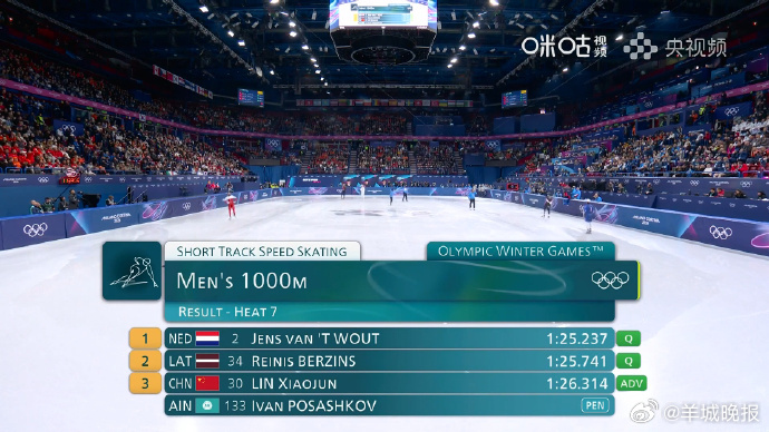 #林孝埈晋级#【#林孝埈1000米预赛被判晋级#】米兰冬奥会短道速滑男子1000米预赛,被中立运动员犯规,林孝埈被判晋级下一轮。#男子短道速滑1000米预赛##女子短道速滑500米预赛##短道速滑 紧张#(咪咕体育)(编辑:郑宗敏;审签:周乐瑞)