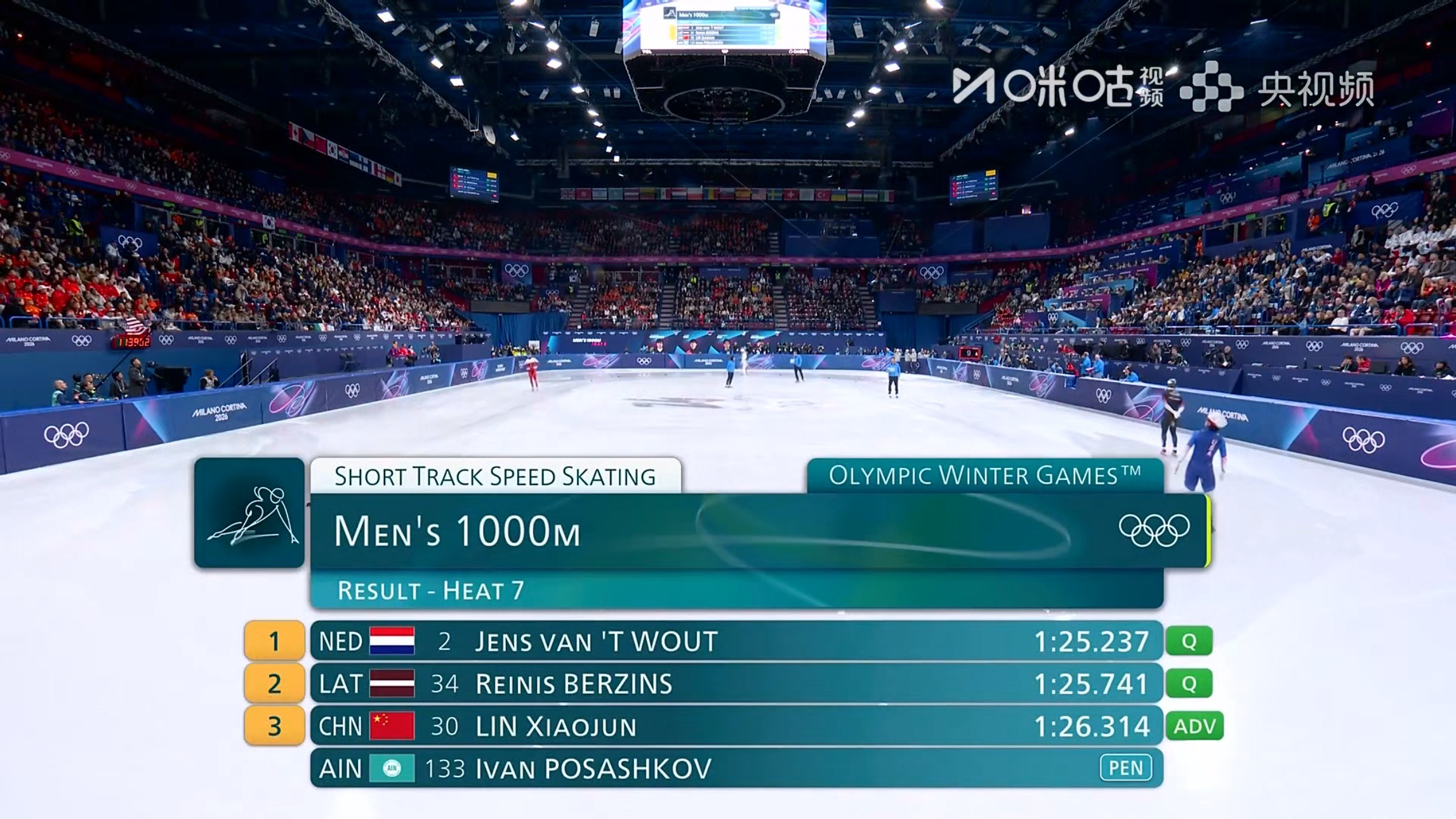 孙龙1000米小组第二孙龙1000米顺利晋级米兰冬奥会短道速滑男子1000米预赛