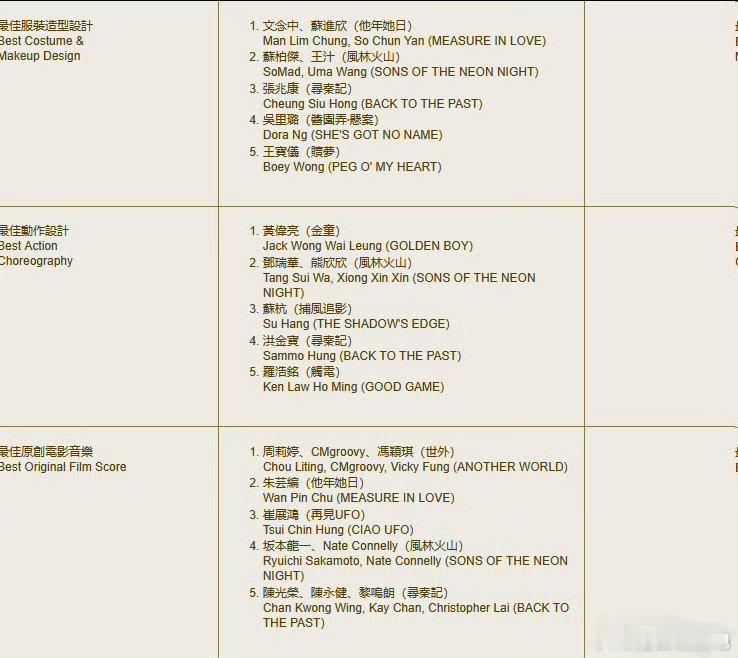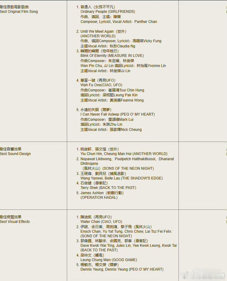 第44届香港电影金像奖提名名单🈶