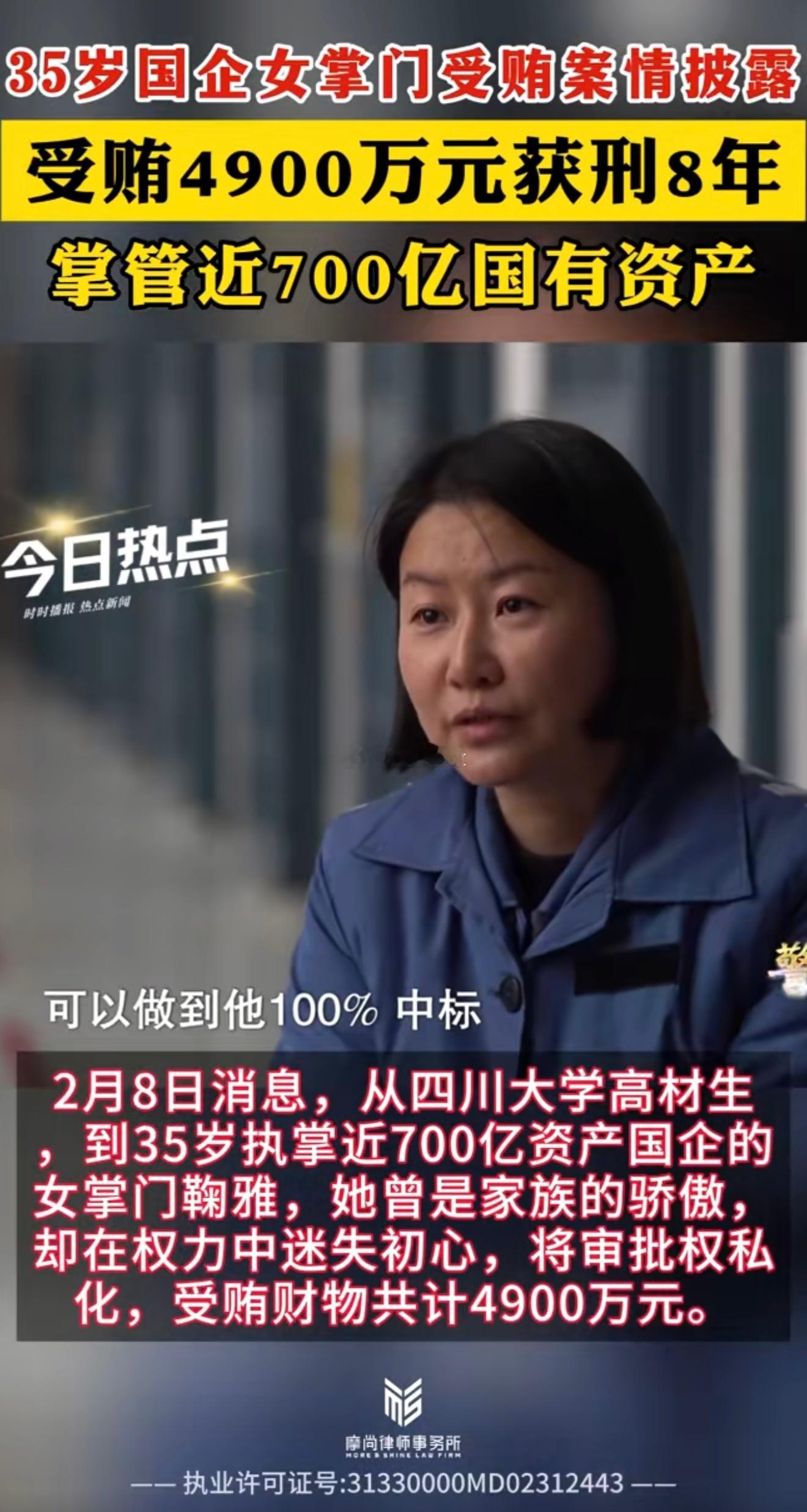 鞠雅80后国企“美女董事长”,26岁副科35岁执掌近700亿资产国企,受贿4900万,追缴4000万,罚款100万,判刑8年!
