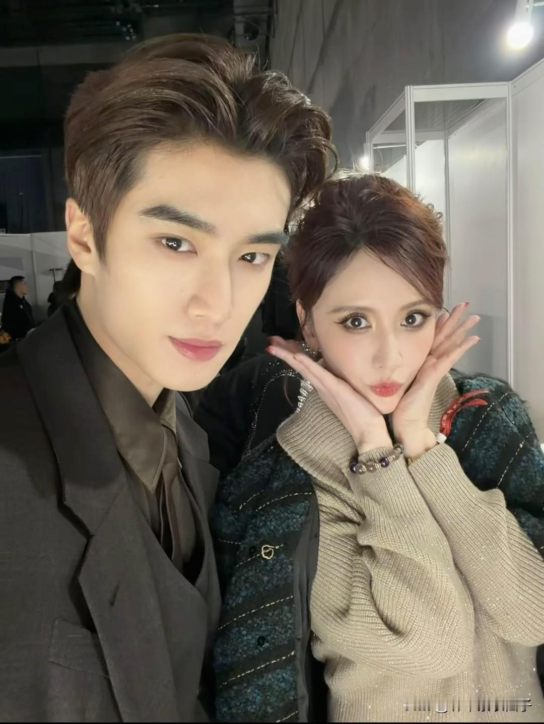 左边是张康乐,2001年出生,身高183cm。 右边是张萌,1981年出生,身高171.5cm。 两人在微博之夜后台同框合影,张康乐西装大背头造型非常亮眼,骨相优越,堪称建模脸。 张萌身穿卡其色针织衫,披着大衣,表情生动。 二人同框,有没有觉得十分亮眼呢?