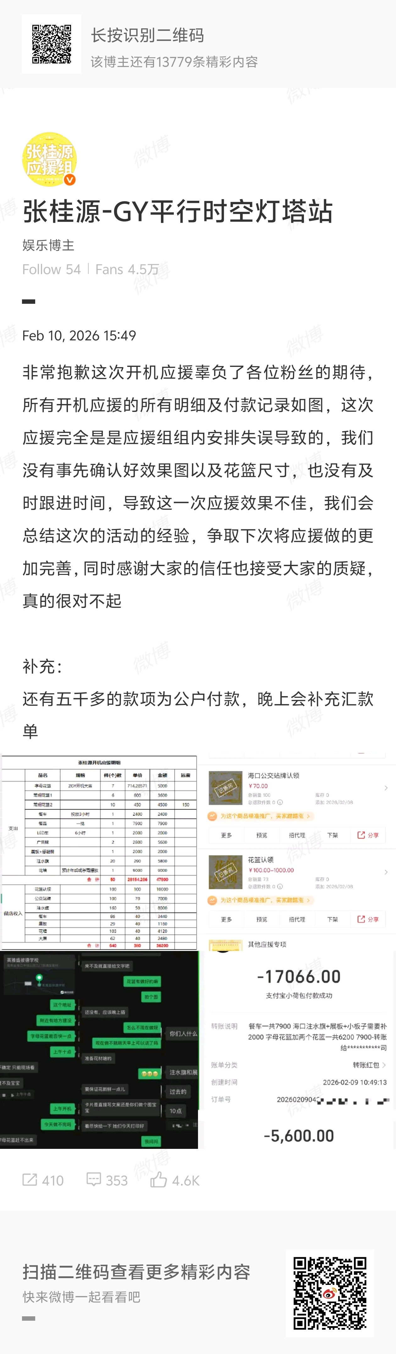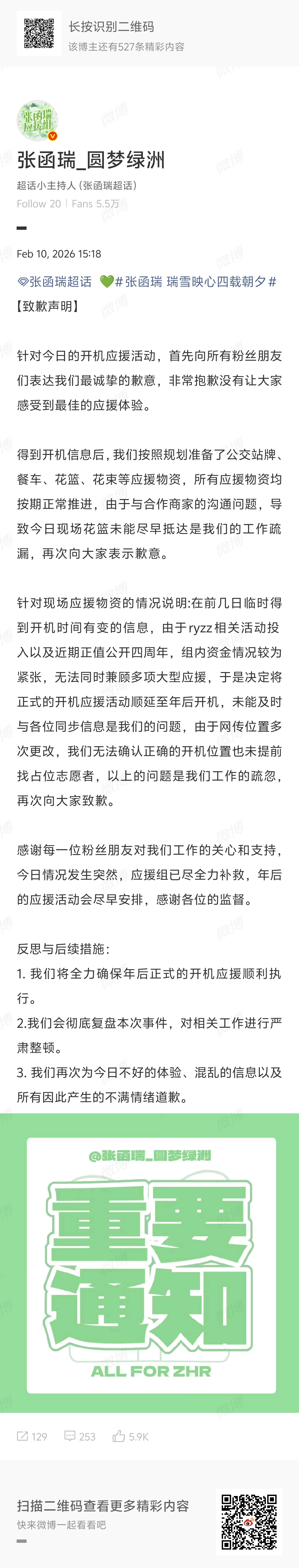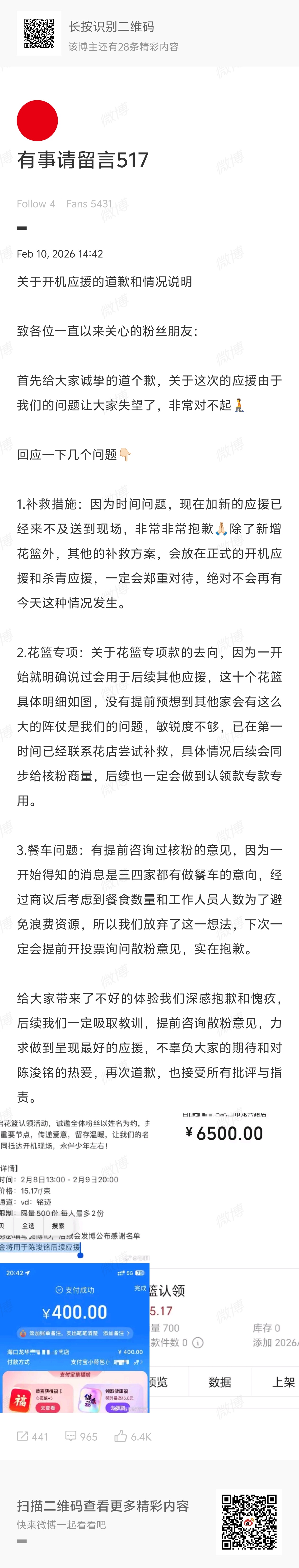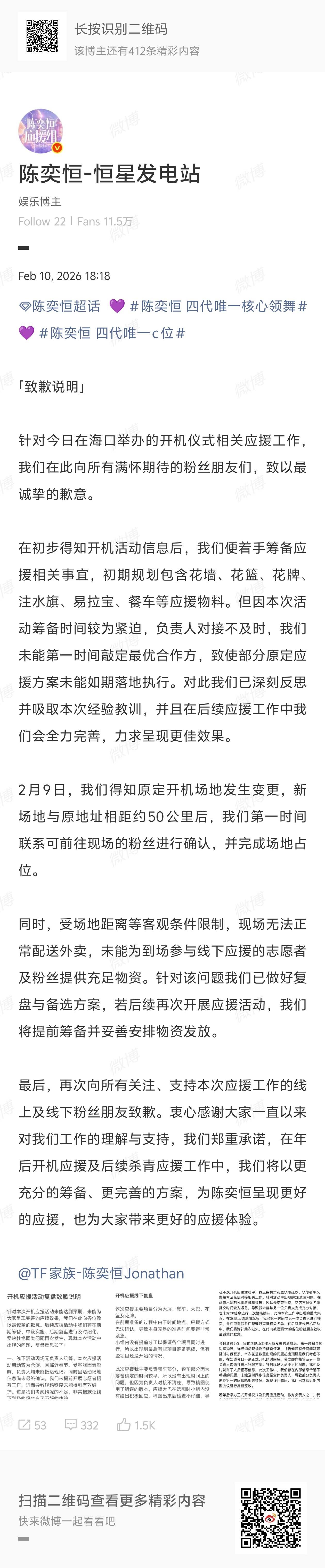 TF四代张桂源陈奕恒陈浚铭张函瑞陈思罕应援组向粉丝道歉。