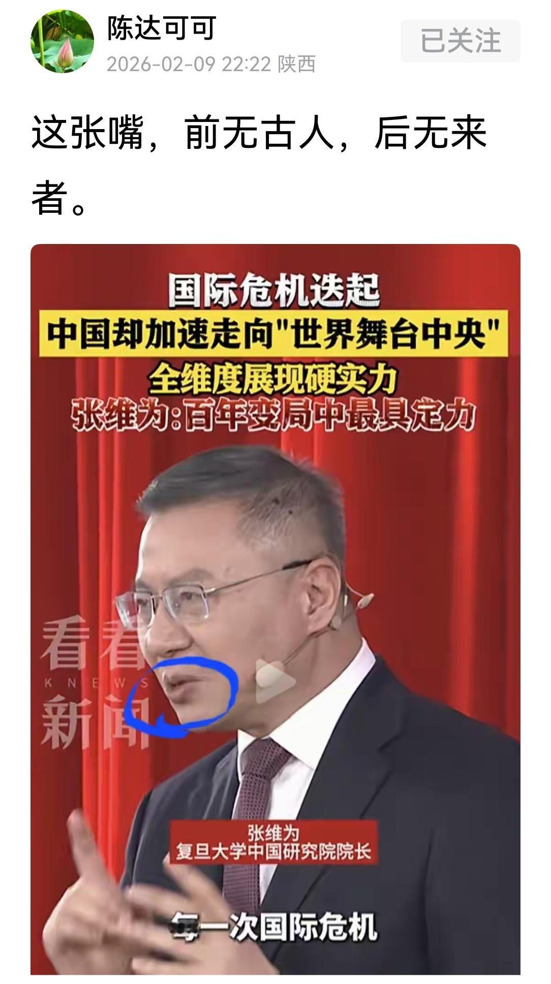张维为教授,口若悬何,意有所指。