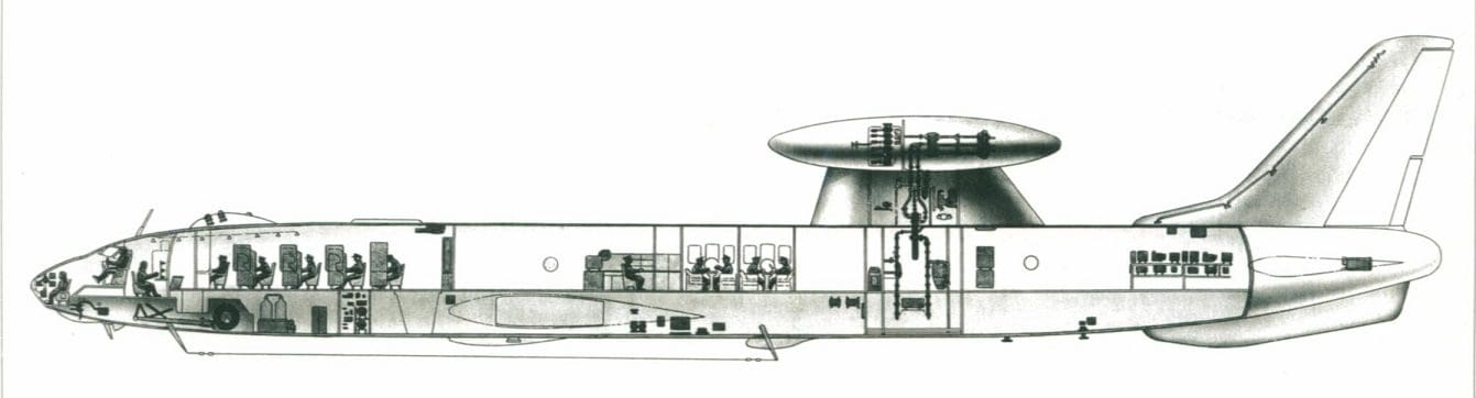烽火问鼎计划每天认识一件兵器 图波列夫图-126“苔藓”预警机的机组分为两个部分,驾驶机组包括两名飞行员、两名领航员、一名无线电操作员和一名飞行工程师组成。雷达机组由拦截官、三名RLS面板操作员、ECM/ESM无线电设备操作员以及设备维修工程师构成。机组成员配备有带铺位的休息区,并特别注重将乘员与飞机上各类电磁辐射源进行隔离。