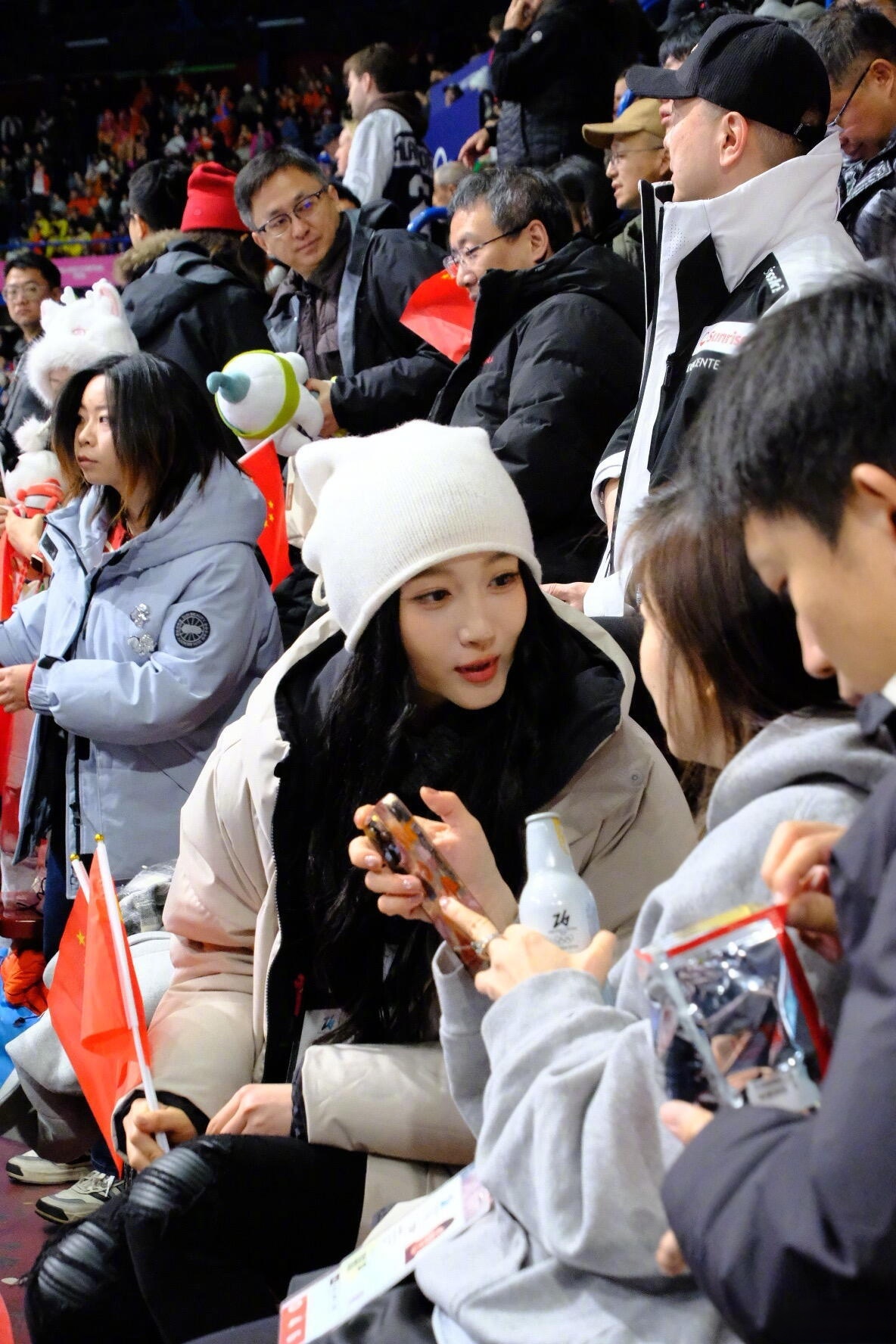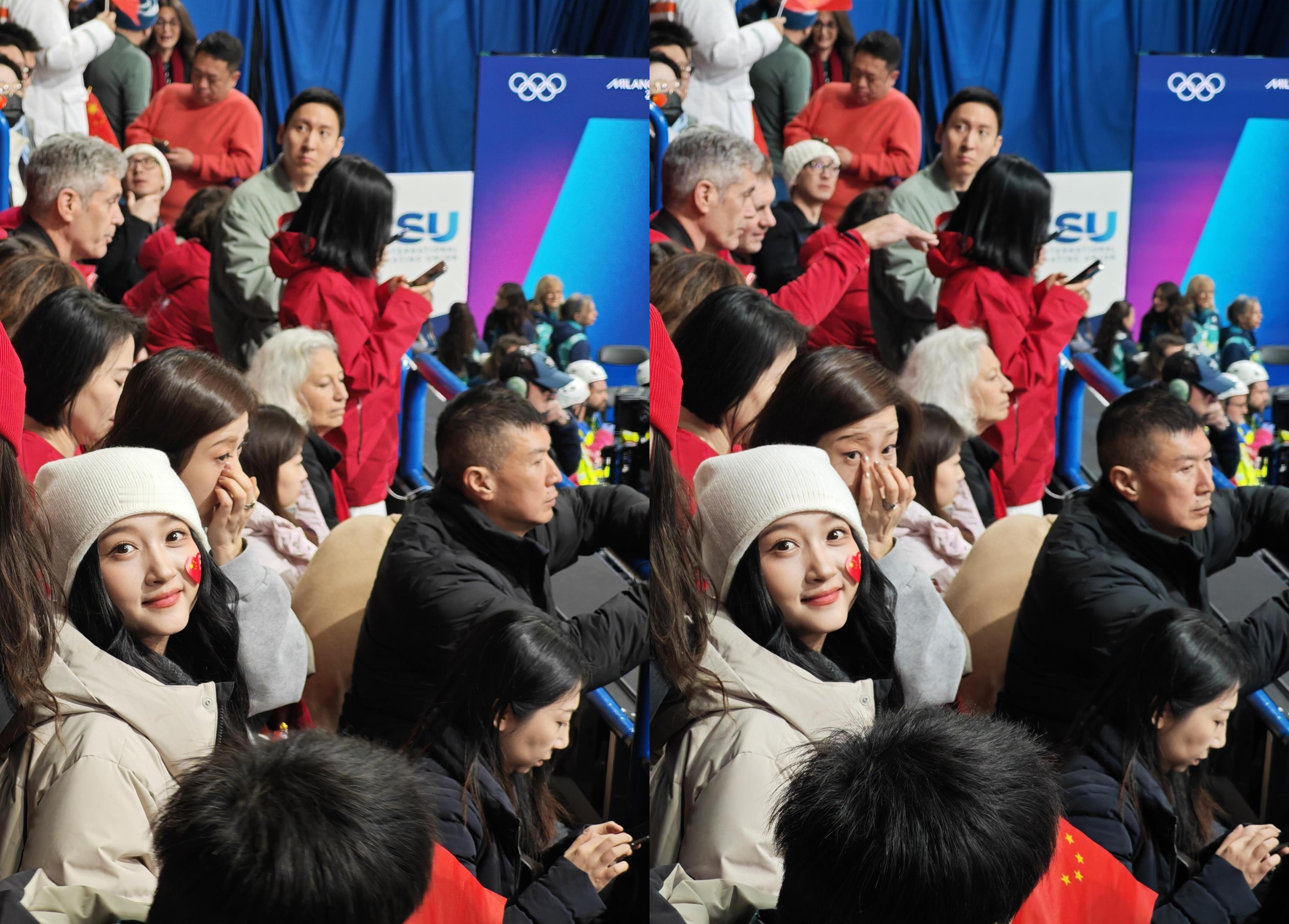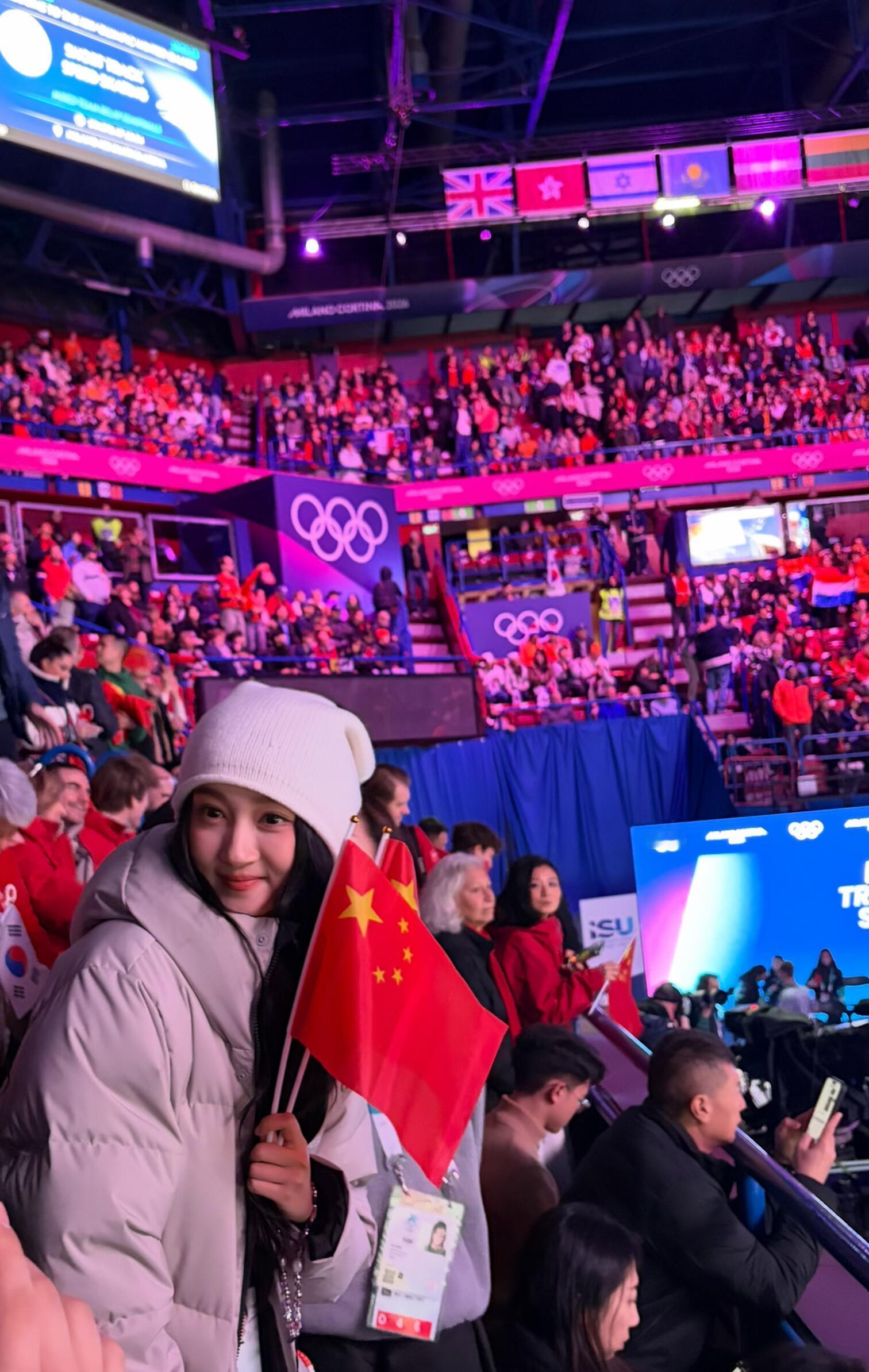 关晓彤观赛中国短道速滑关晓彤你是要跟冬奥现场的每一位中国观众都合影吗真的慕了慕了