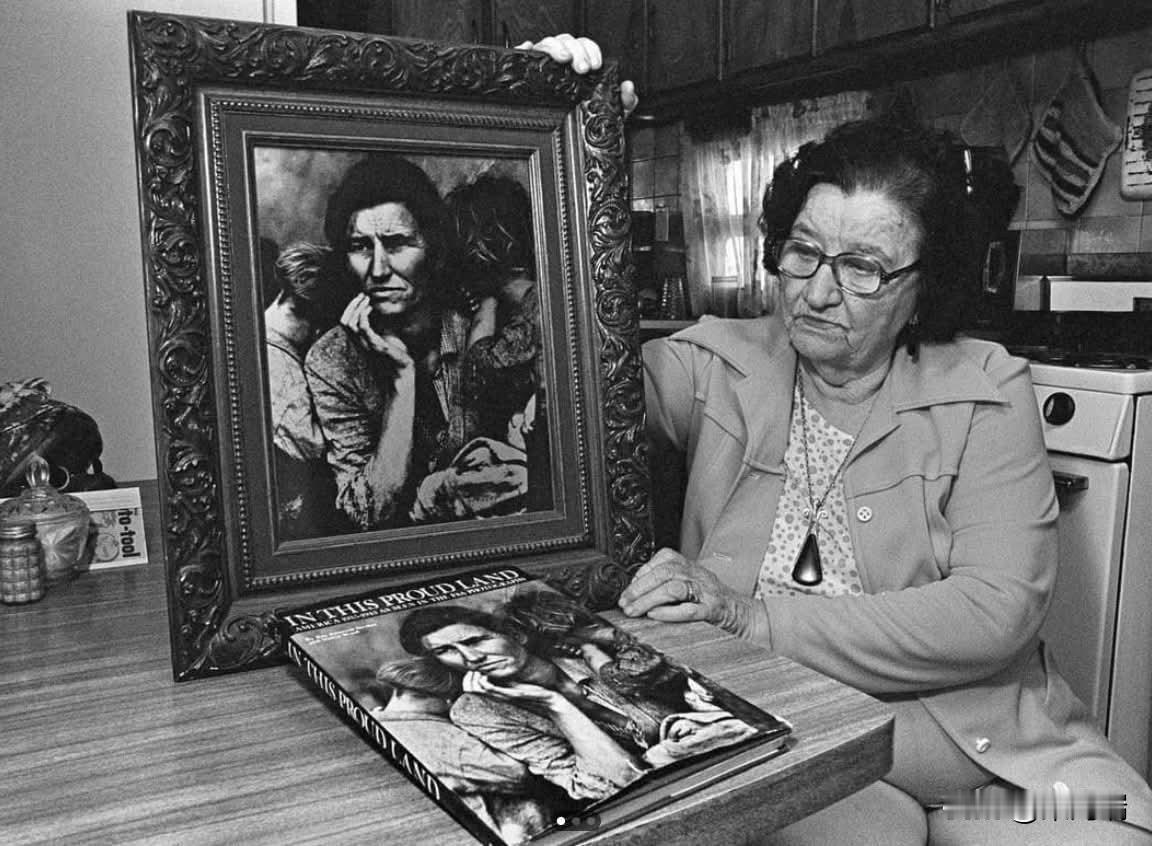 1978年10月10日,在身份公开后,多萝西娅·兰格1936年拍摄的著名照片中的移民母亲弗洛伦斯·汤普森在接受采访时举起自己的照片…… 1936年,多萝西娅·兰格在大萧条时期拍摄的一张照片,成为美国历史上最广为人知的苦难影像之一。照片中的人物后来被确认为弗洛伦斯·汤普森,她象征着美国历史上最黑暗的经济时期之一,流动农场工人和流离失所的家庭所经历的苦难。然而,几十年来,她的真实身份一直是个谜。 20世纪70年代末,汤普森的身份终于被确认。她对这张让她成为幸存者象征的照片表达了复杂的情感。虽然这张照片提高了人们对移民工人悲惨生活状况的关注,并影响了政府的救济工作,但汤普森本人却从未获得任何补偿。她解释说,照片拍摄时,她只是想尽力养活自己的孩子。 照片拍摄时,汤普森年仅32岁,独自抚养七个孩子。这张著名的照片促使美国政府向她和其他数千人居住的难民营提供紧急食品援助。几十年后,汤普森在20世纪80年代生病,照片的影响力引发了公众捐款,帮助她支付了医疗费用,完成了一个意义非凡的历史轮回。 多萝西娅·兰格(Dorothea Lange,1895年—1965年)是20世纪美国极具影响力的纪实摄影师和新闻摄影先驱。她最著名的贡献是在20世纪30年代大萧条时期,通过镜头捕捉了美国社会底层民众的苦难与坚韧,其作品深刻影响了现代纪实摄影的发展。 代表作《移民母亲》(Migrant Mother, 1936):这是大萧条时期最著名的影像符号。照片拍摄于加利福尼亚州的一个豌豆采摘者营地,画面中的母亲(佛罗伦萨·汤普森)神情忧虑而坚定,身边依偎着年幼的孩子。该作品由美国国会图书馆收藏,成功引发了公众对流离失所农民的关注,并促使政府紧急拨发救济物资。