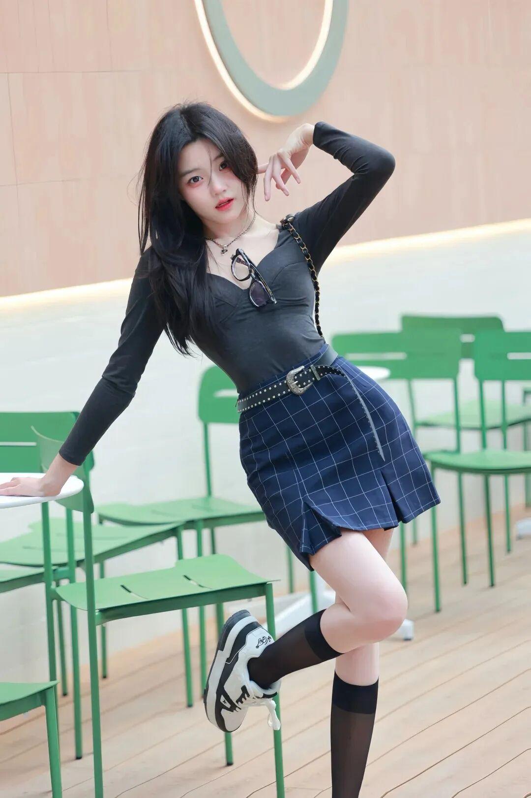 优雅黑发女郎,白裙黑丝,自信姿态,魅力无限!