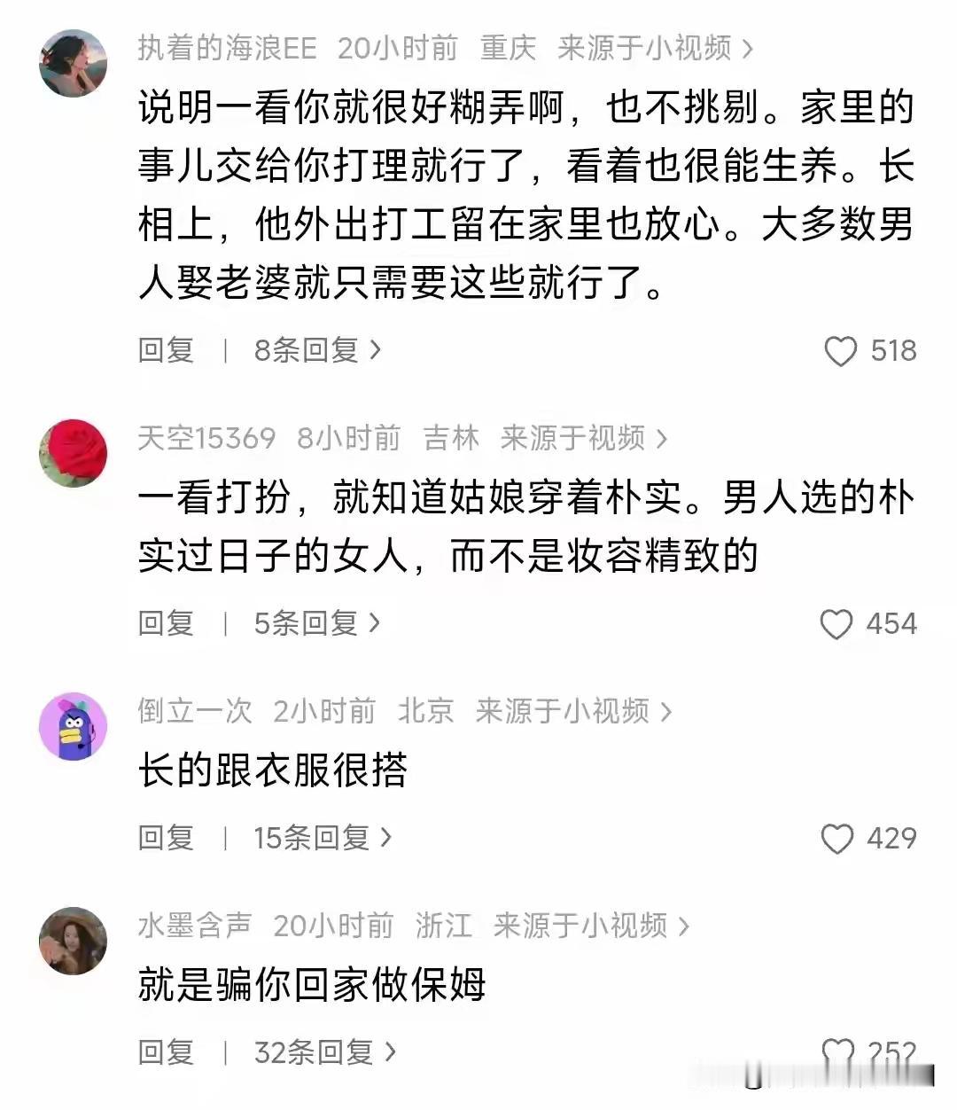 安徽女孩穿睡衣相亲奇遇:我故意扮丑试探,他们却急着订婚,这届男人到底在慌什么? 那件起球褪色的旧睡衣,成了照见婚恋市场荒诞真相的一面镜子。安徽女孩用一场摆烂式相亲,本想吓退对方,却意外引爆全网热议。当男方全家对着不修边幅的她眼睛发亮,急着敲定婚事时,无数人嗅到了一丝不寻常的气息。这哪里是浪漫邂逅,分明是一场精心计算的生存博弈。 女孩的初衷简单而叛逆。面对铺天盖地的催婚压力,她选择用最邋遢的形象武装自己,素面朝天,睡衣拖鞋,试图劝退每一个可能的对象。她以为这会是一封无声的拒绝信,却没想到,在有些人眼里,这竟成了加分项。男方的热情并非源于欣赏,而像发现稀缺资源般的惊喜。 男方父母的夸赞值得玩味。“实在”、“会过日子”、“朴素难得”,这些词汇堆砌出的,是一个低维护成本、高实用价值的婚姻合伙人形象。在他们眼中,女孩的“丑”并非缺点,而是意味着她可能不要彩礼、不图奢华、安于家务。这不是心动,是心动于“省钱省心”。 评论区瞬间分裂成两个世界。一方痛斥这是物化女性,将妻子简化为生育工具和免费劳动力;另一方则深感共鸣,理解在天价彩礼和物质重压之下,一个“没要求”的女孩多么罕见。双方都在用自己的生存逻辑,解读这场荒诞剧。 更深刻的讽刺在于,那些精心打扮、追求生活品质的女孩,反而容易被贴上“拜金”、“难养”的标签。而当女孩试图用“丑”来捍卫自主权时,却被迅速纳入“贤惠好拿捏”的框架。她的反抗,恰好落入了另一种期待的陷阱。 这场闹剧撕开了当代相亲的遮羞布。当婚姻被日益沉重的物质门槛挤压,感情退居二线,算计浮出水面。很多人寻找的不是灵魂伴侣,而是风险最低、性价比最高的生活搭档。焦虑驱动下,“赶紧锁定一个”成了比“找到对的人”更紧迫的任务。 但婚姻终究不是买卖。建立在“低成本”基础上的关系,能否经得起漫长岁月的考验?当一方看中的是“省事”,另一方渴望的是“尊重”,这样的结合能走多远?睡衣可以随意,但婚姻不该将就。 或许我们都该冷静下来,重新思考婚姻的意义。它不该是恐慌下的仓促选择,也不该是算计后的利益结合。无论是穿着睡衣还是盛装,每个人都值得因为“我是我”而被爱,而不是因为“我看起来很好养活”而被选择。 (来源:观象、网络热议及多方评论综合梳理) 婚恋观 相亲现实