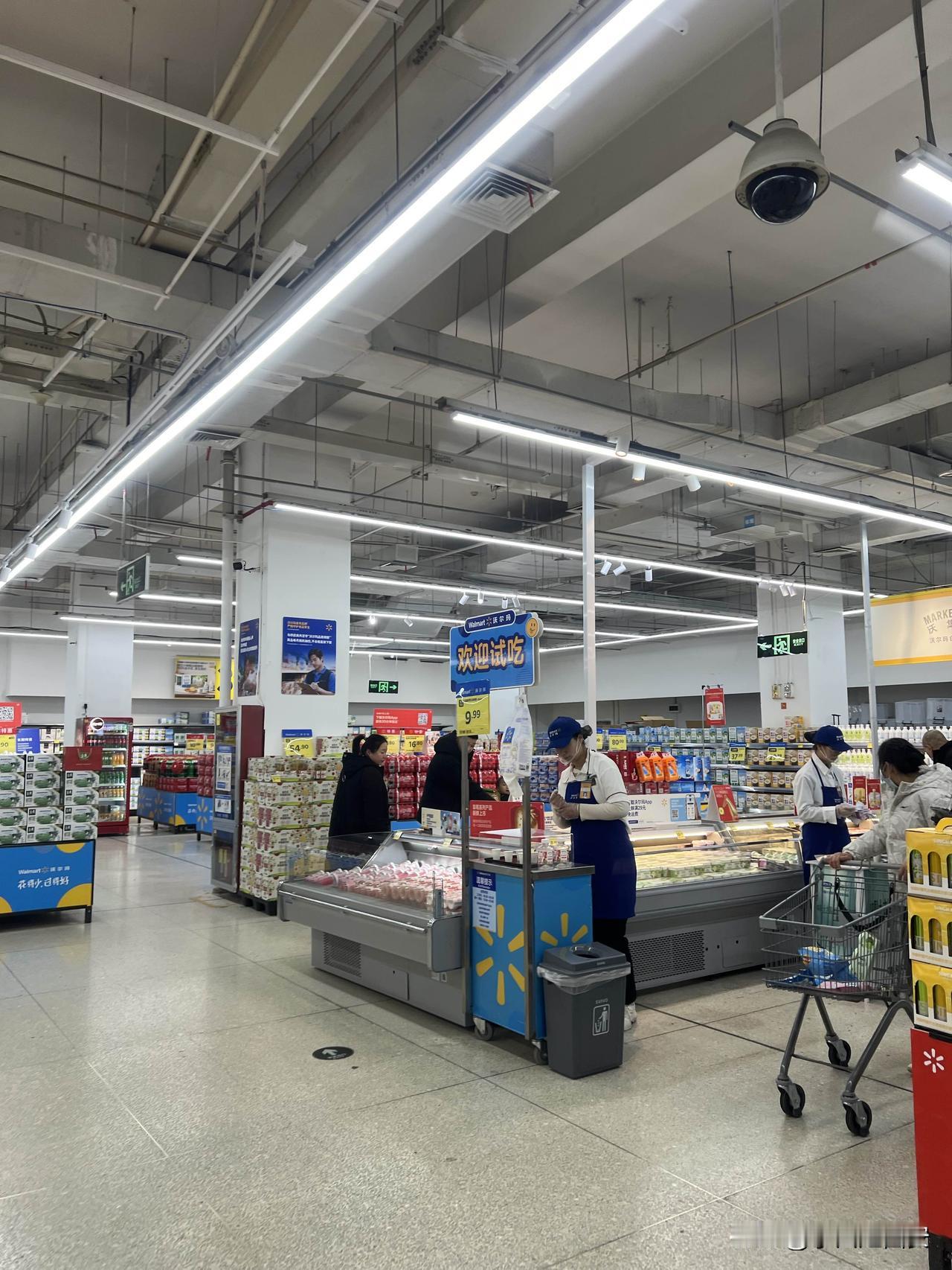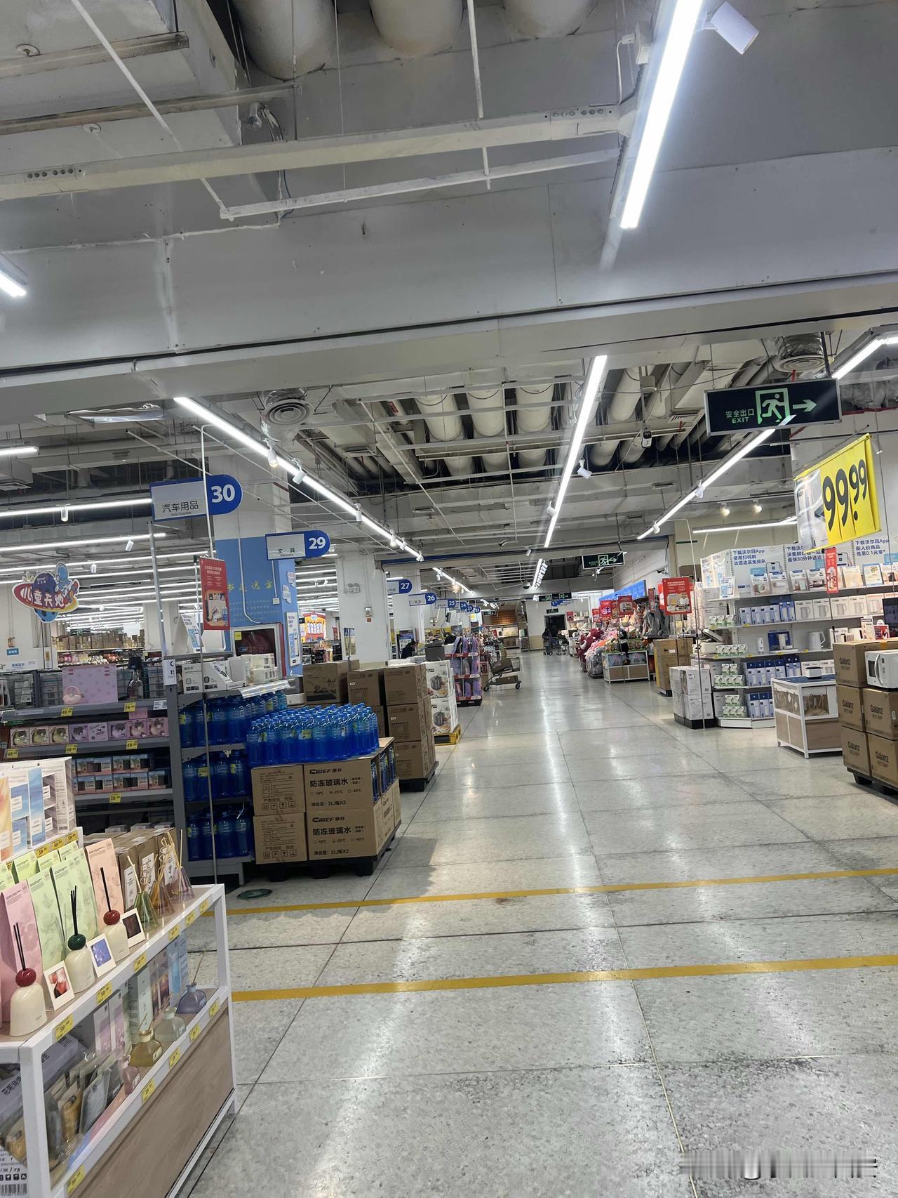 目前像这么大规模的超市 西安已经不多了 这就是沃尔玛超市 坐拥城东二环交通枢纽位置 人气不及当年李家村万达 的沃尔玛 除了食品区还有顾客, 百货区受电商冲击 几乎无人问津。
