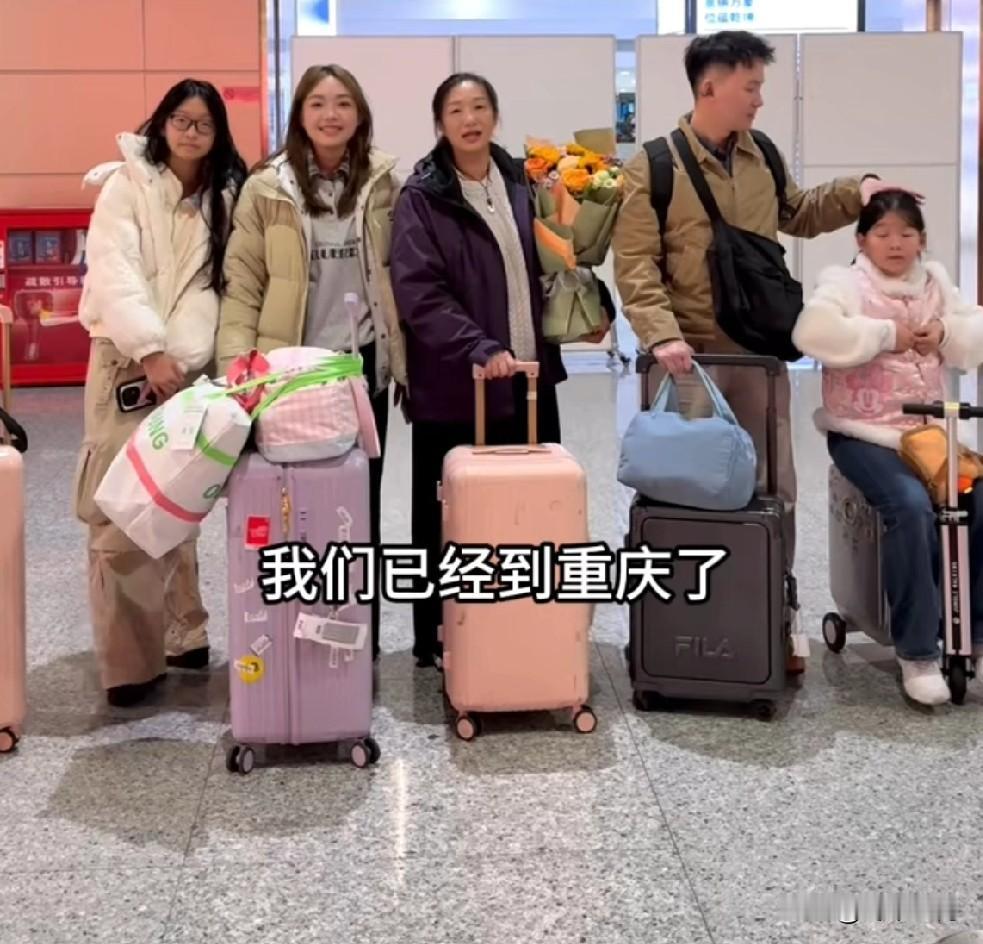 最开心的路就是回娘家,很少能看见许健华仿佛小女孩一般,虽然已人到中年,但是回娘家还是能够令一个50岁的女人,欢欣雀跃的。 重庆机场,许健华携四儿女准备回娘家过春节。 此时的许健华,俨然已是一个人生赢家,不仅期盼了20多年的儿子谢浩男回归了,她还因此因祸得福,成为了一位大网红。 在不到一年的时间里,赚得盆满钵满,为四个儿女张开了一双坚实的臂膀。