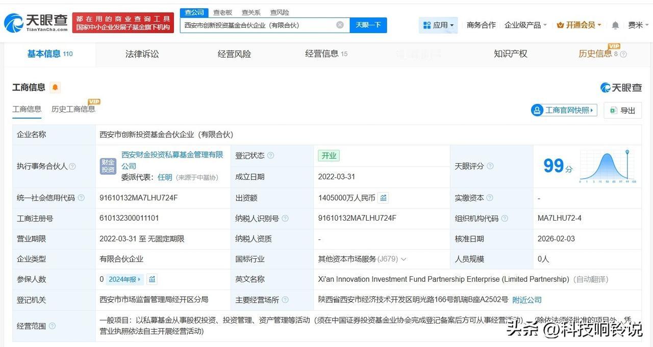【西安市创新投资基金增资至140.5亿 增幅约40%】 天眼查App显示,近日,西安市创新投资基金合伙企业(有限合伙)发生工商变更,出资额由100.5亿人民币增至140.5亿人民币,增幅约40%。 该基金成立于2022年3月,执行事务合伙人为西安财金投资私募基金管理有限公司,经营范围为以私募基金从事股权投资、投资管理、资产管理等活动,由西安财金投资管理有限公司、西安高新金融控股集团有限公司、西咸新区两链产业创新投资合伙企业(有限合伙)等共同出资。 天眼查信息: