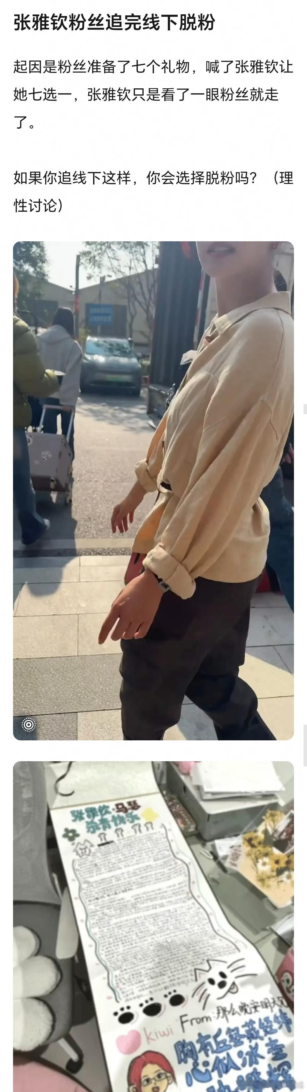 张雅钦粉丝好像因为线下送礼物没回应脱粉了