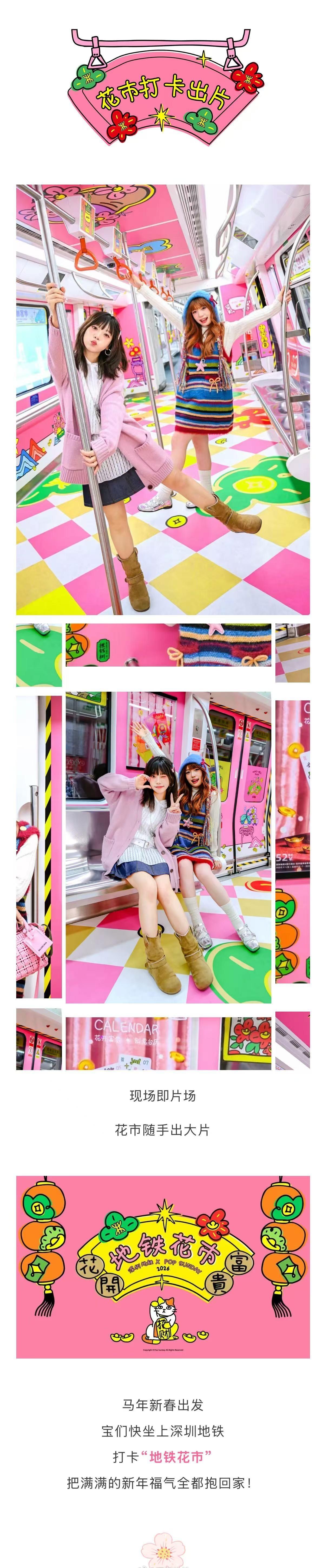 【花市搬进深圳地铁里了?】这是真的! 深圳首创「地铁花市主题列车」上线!深圳地铁和POP SUNDAY合作,以经典IP摇钱树2.0花开富贵为视觉理念,把新春花市的热闹与烟火,搬进2/8号线地铁。12款摇钱树IP年花上线,每款年花扶手量身定制了专属对联~深圳地铁喊你在深过年