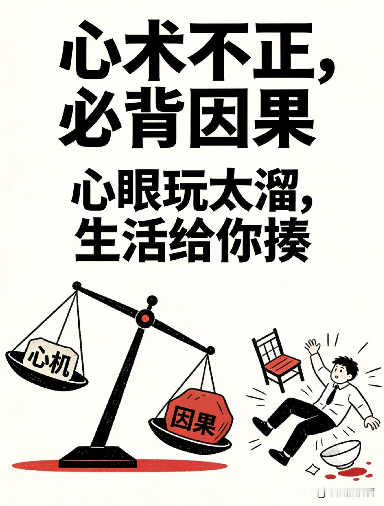 1. 心术不正,必背因果 天道有轮回,苍天饶过谁😏 2. 别玩心机 出来混,迟早要还的✨ 3. 心术不正,必背因果 心眼太多,路会越走越窄🤌 4. 做人别太坏 报应虽迟但到😅 5. 心术不正,必背因果 你算计别人,生活算计你🌚