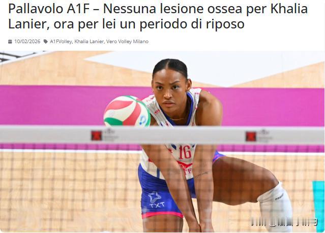 庄宇珊之圣乔瓦尼明天凌晨的对手:米兰官宣主攻美国人拉尼尔不上场 米兰社交媒体 instagram 发文: "卡利亚·拉尼尔没有骨伤,她现在需要休息一段时间"。 来源:电子排球杂志
