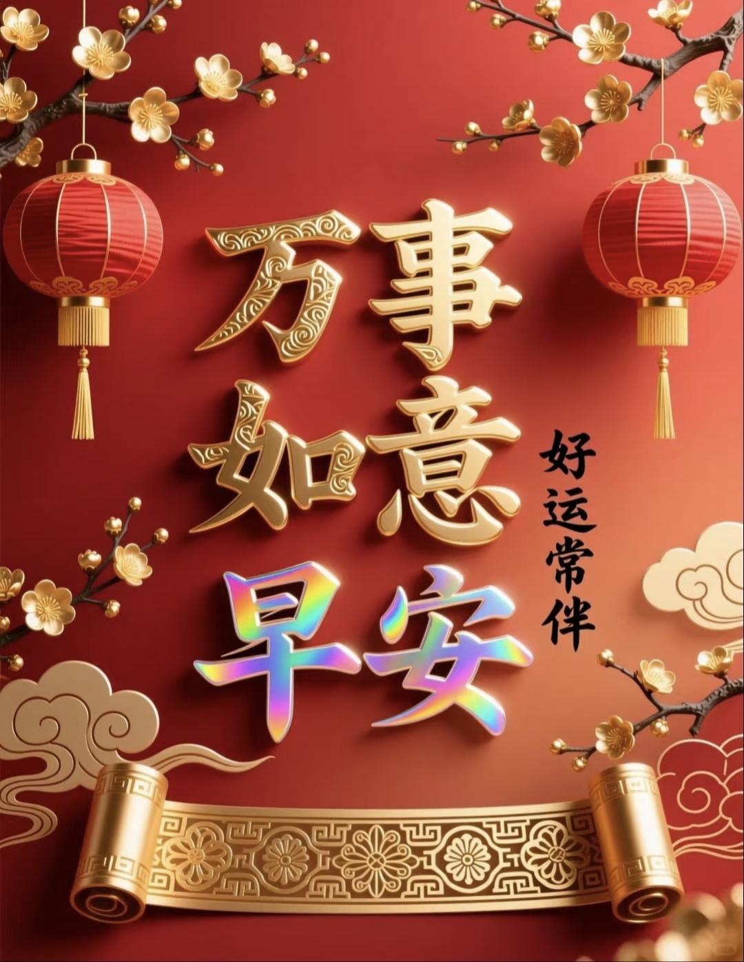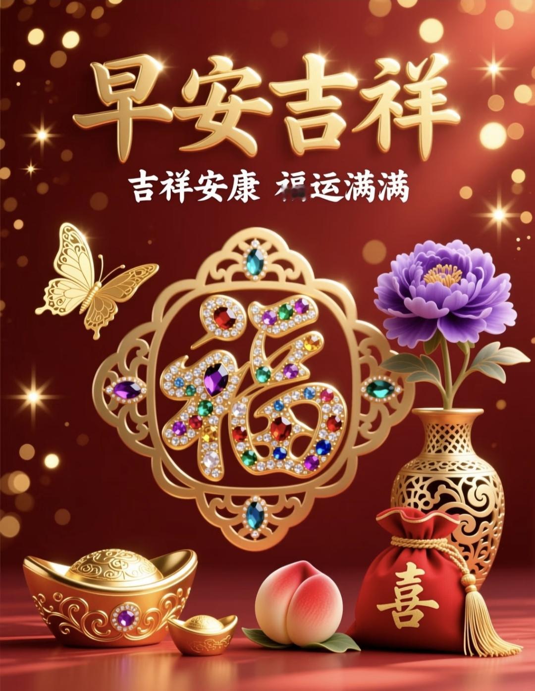 早安吉祥,福运满满,好运常伴,喜乐安康。 传统文化