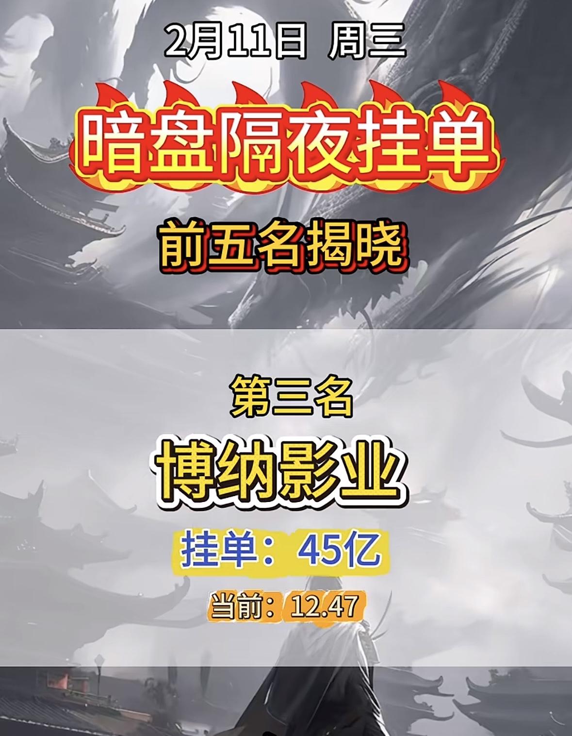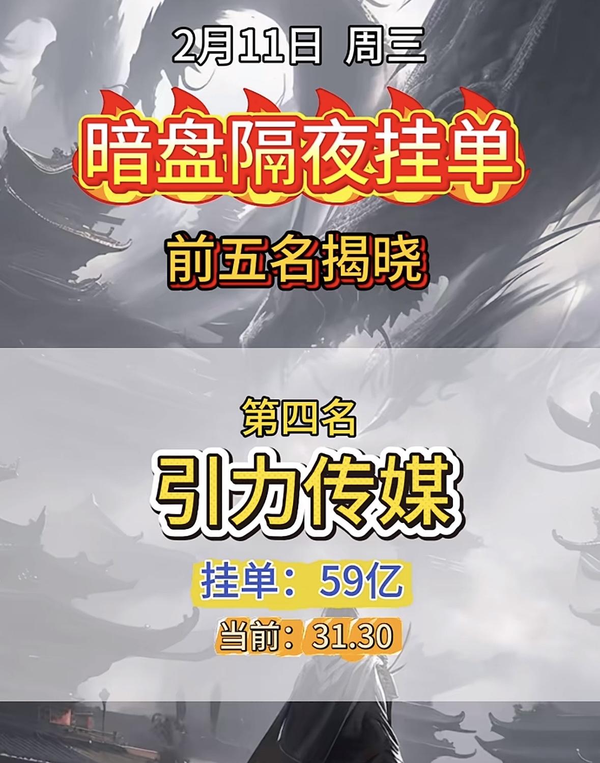 2月11日暗盘隔夜挂单榜,前五名揭晓! 暗盘挂单揭榜,龙头强势领跑,资金热情高