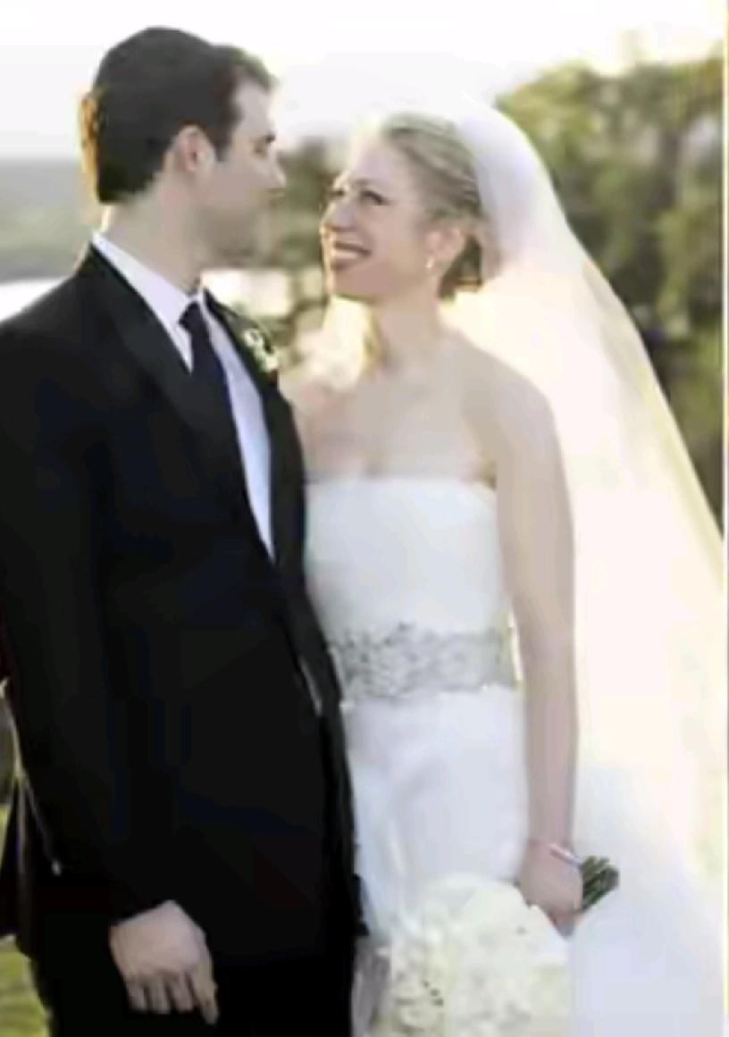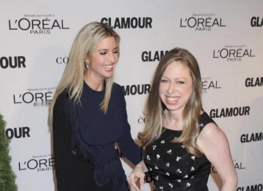 伊万卡和切尔西是一对好朋友。 两人穿的婚纱都是一个牌子的。 切尔西比伊万卡大一岁,伊万卡比切尔西的个子高。 切尔西的长相不如伊万卡漂亮,但她的笑容很治愈。 切尔西作为父母的独生女,是不是比伊万卡得到的爱更多一些?