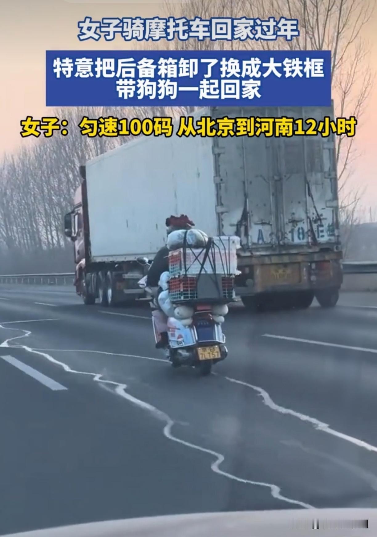 拆了摩托后备箱装铁框!女子这波操作让百万网友泪目 春运路上这一幕真的破防了!女子骑摩托返乡,竟然把后备箱拆了换成大铁框。你以为她带年货?错了,框里坐着的,是她家毛孩子。 这几天刷到个视频,反复看了三遍。贵州黔东南,寒风里一个姑娘正在捣鼓摩托车。她不是修车,而是小心翼翼拆掉原装后备箱,换上个扎扎实实的大铁筐。筐子用麻绳捆得结结实实,里面垫着旧棉袄。接下来画面一转——她抱来一只小狗,轻轻放进筐里,系好安全带,自己跨上摩托,消失在返乡的车流中。 原来,她要带狗狗回家过年。 很多人不知道,骑摩托车返乡有多辛苦。上千公里路程,风吹日晒,手脚冻僵。普通骑手行李能简则简,可她偏偏“反向操作”——拆掉轻便的后备箱,换上笨重的铁筐。为什么?就为了那个不会说话的家庭成员。 “再远的路,也不能把它丢下。” 这句话她没说,但全在行动里了。铁筐比不上后备箱防水,不如行李箱美观,但她亲手改造的空间,刚好够狗狗转身、趴下、看到沿途风景。有网友说:“那棉袄是她自己的吧?袖口都磨白了。”是啊,自己用旧的,给狗狗当垫子却毫不吝啬。 更触动我的细节是,她把铁筐内侧全包上了软布。担心铁框太硬硌着狗狗,担心螺丝头刮伤毛孩子。这些沉默的呵护,比任何团圆标语都真实。返乡路那么长,寒风那么刺骨,可框里的小家伙睡得安稳,因为它知道——这叫“回家”,不是“搬家”。 这些年我们见过太多“不得已”。春运车票难买,很多人把宠物寄养;摩托车队浩浩荡荡,后座多是行李而非生命。正因如此,这个姑娘的坚持才显得格外珍贵。她改装的何止是铁筐,分明是在对抗所有“不得不”的无奈。 视频最后,狗狗在筐里仰头舔了舔她的手套。就这一个动作,让无数养宠人瞬间泪目。它或许不懂什么是春运,但它知道这个颠簸的筐子,是主人能给的全部安全感。 而我们这些看客呢?我们挤在高铁里抱怨信号不好,堵在高速上烦躁按喇叭,却忘了团圆最原始的意义——不是所有人都到齐,而是该在的一个都不少。 今年过年,你身边那个“一个都不能少”的,是谁呢?评论区聊聊,你为团圆做过最“傻”却最暖的事。 春运暖心瞬间 带宠物回家过年 摩托返乡 团圆的意义
