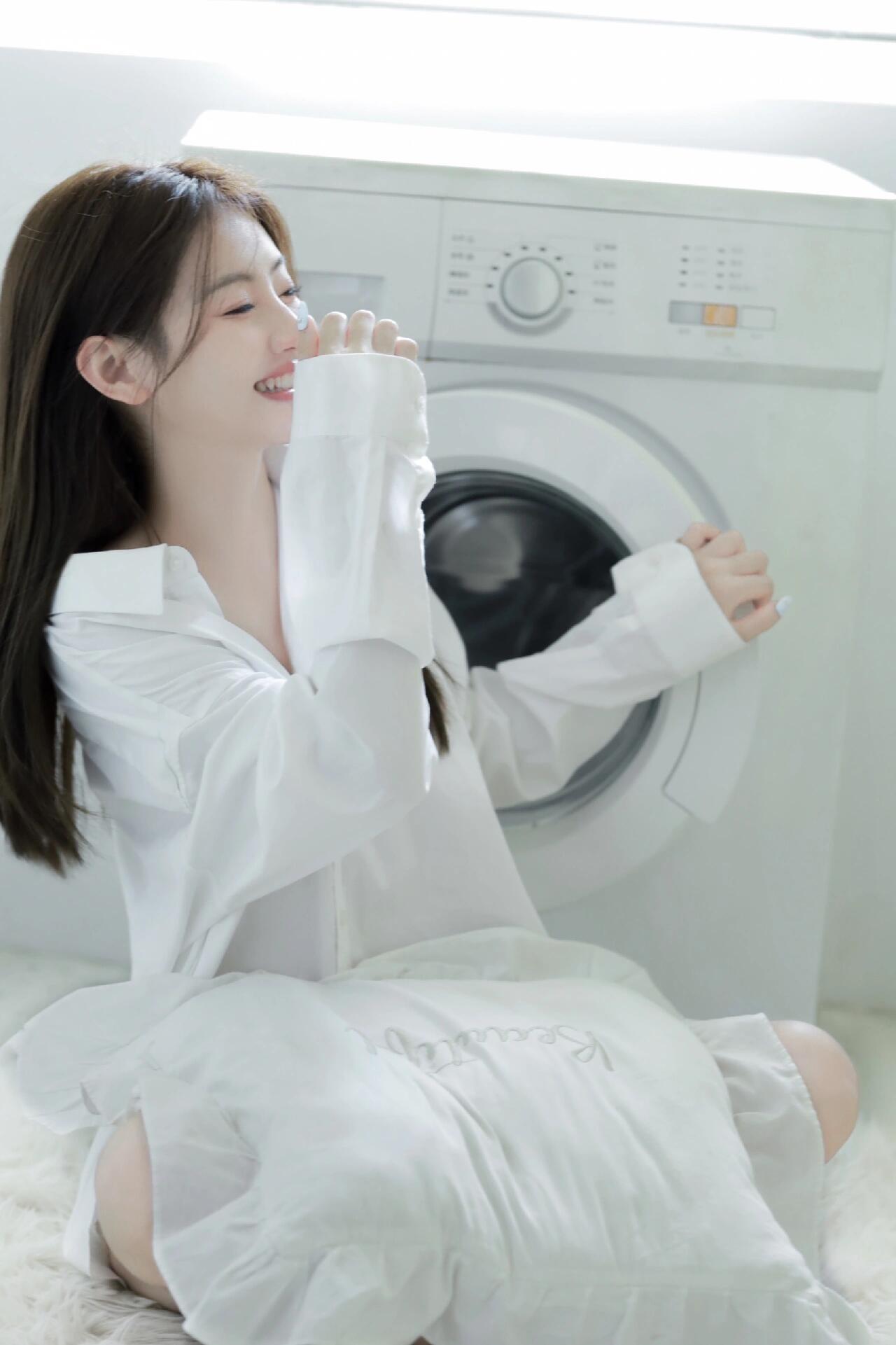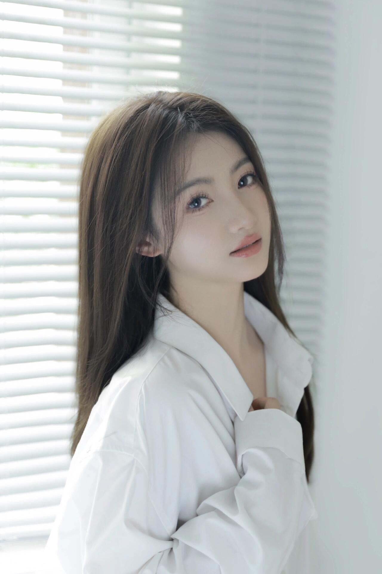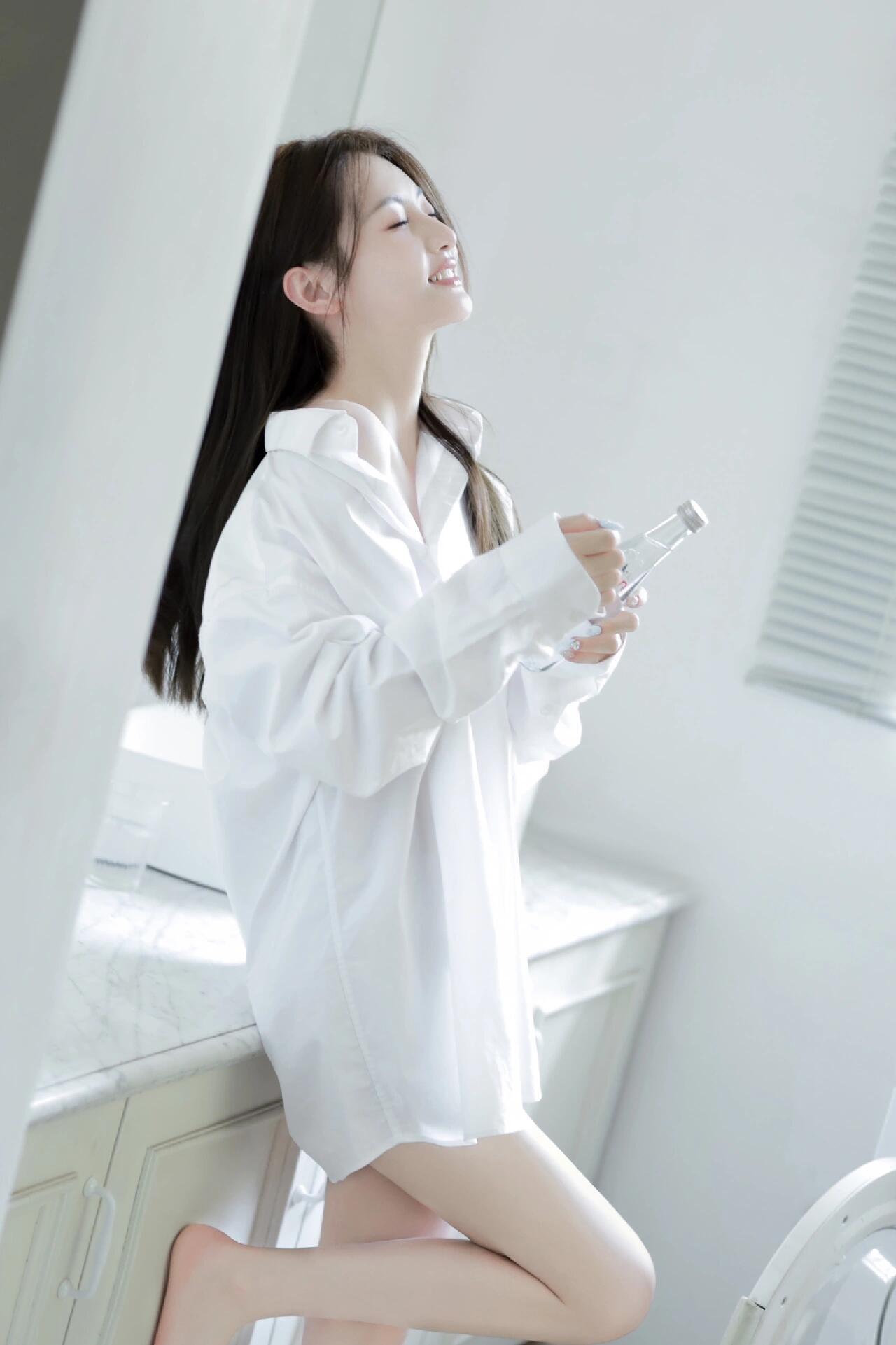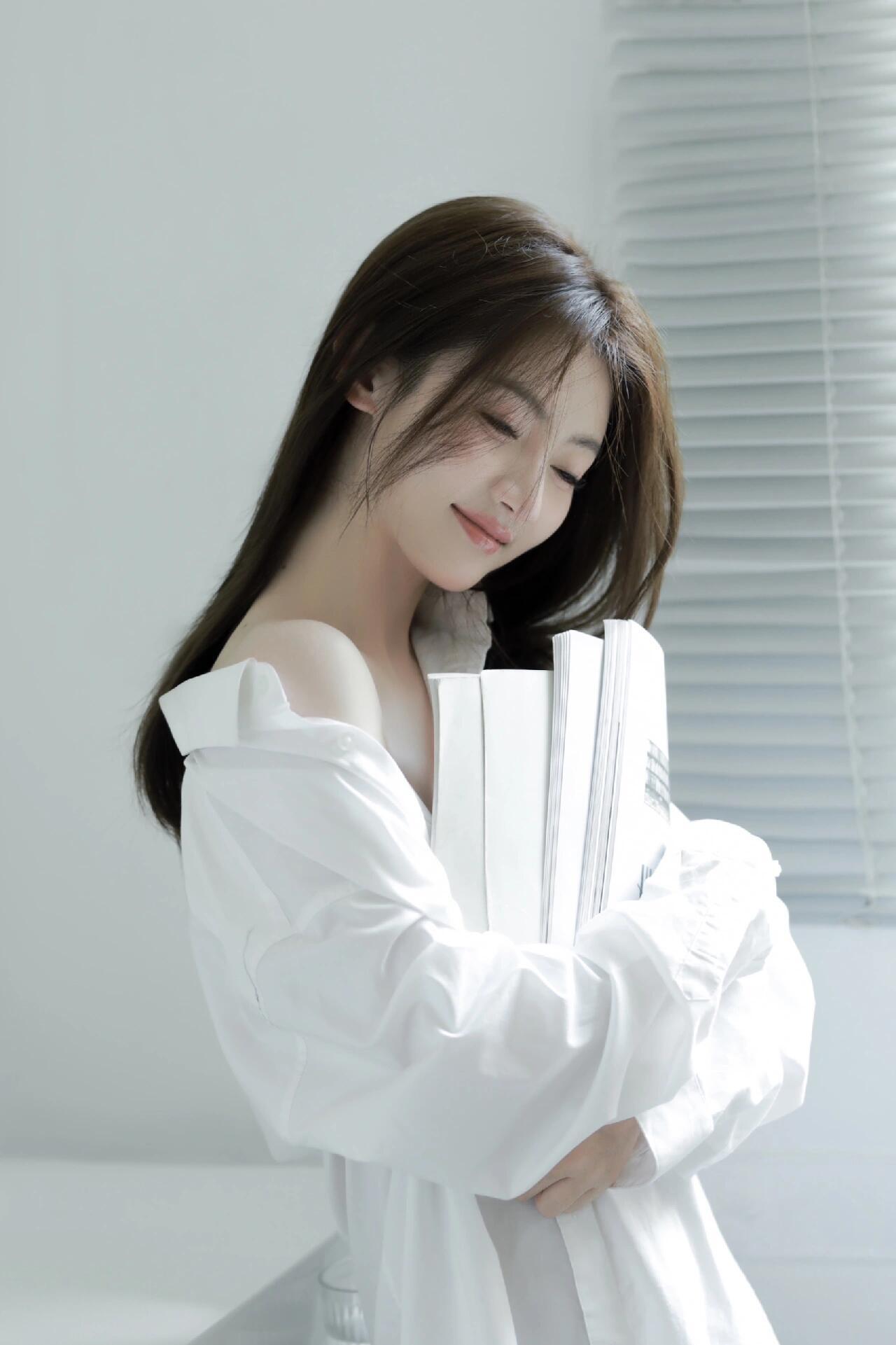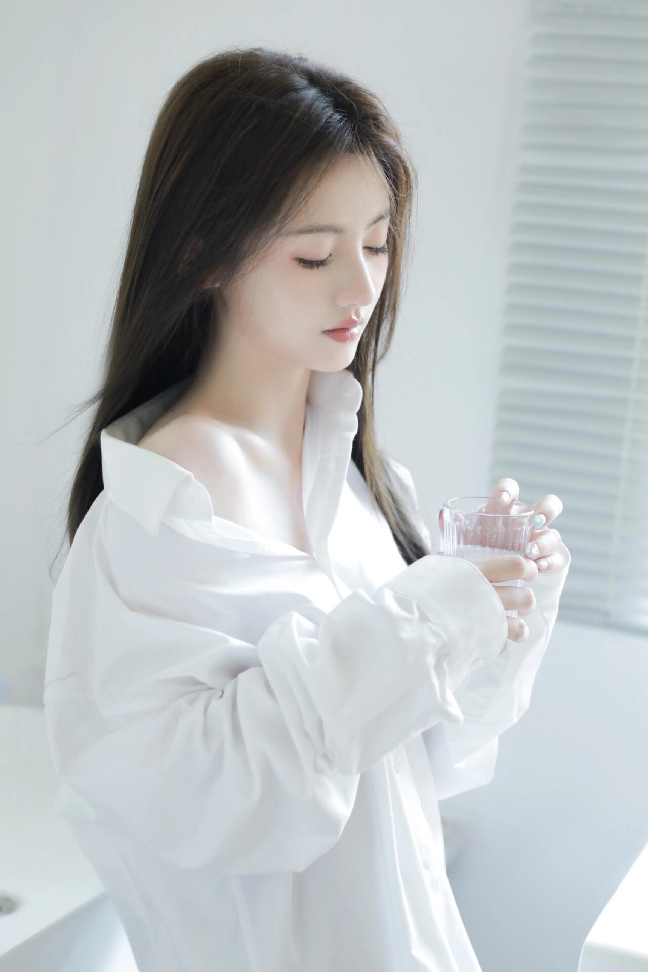 白衬衫滑落肩头,在柔光里晕开一抹温柔的留白