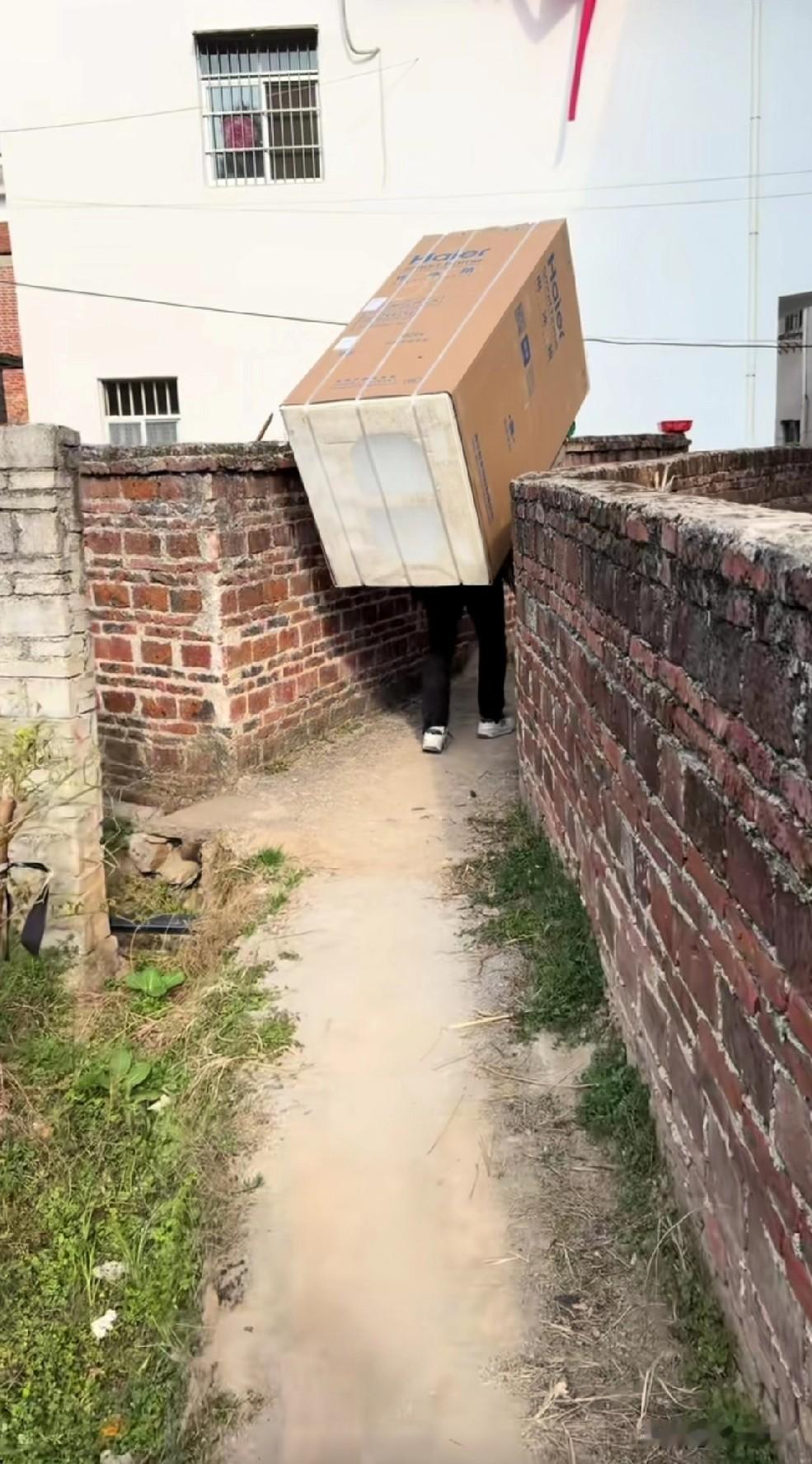 梁志辉爸爸家这条路啥时能修上?你们见过这么堵心的回家的路吗?这是回家必经的路啊,就这么细窄的一小条。 梁志辉爸爸自打找回了梁志辉后,就走上了直播带货的道路。经过这么一段时间的带货,估计家里债也还清了,积蓄也有了,一家人都挺乐呵。 这不,梁志辉头一天给快递过来三台空调,今天梁爸又发视频,大儿子又给买了台冰箱送过来了。 只是看那送货人的脚步,生怕他背着个大冰箱,一脚踏到田埂里去啊。 这条小窄道两个人并行都过不去,只能一个人过,再看转弯处那两堵围墙瞧着,可是真堵心啊,到底这条道啥时才能修?