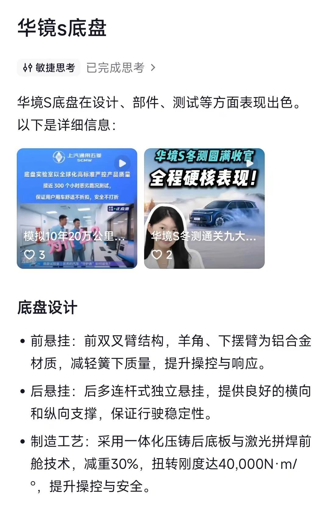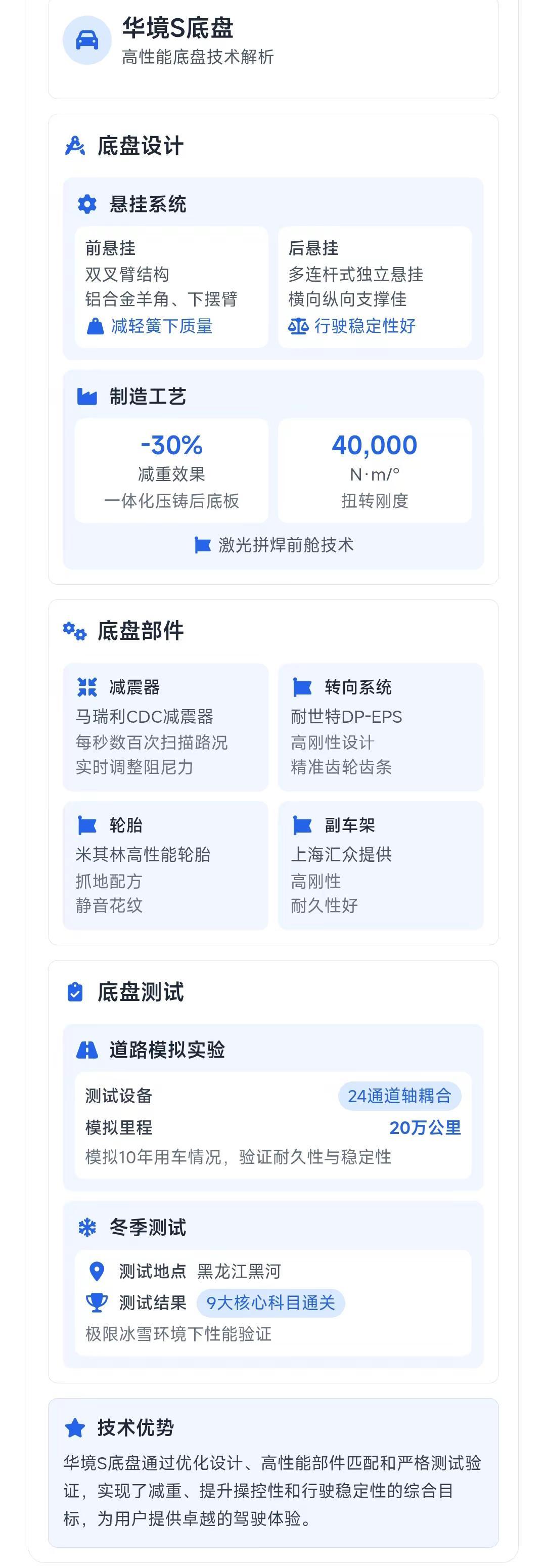 宝骏华镜S,看样子,这回真上硬货啊!😲正如上汽通用五菱高管表示,华镜S内部口号,逼疯自己,卷死对手,才能获得新机。四驱,前双叉臂悬挂+意大利马瑞利的CDC可变电磁减震器,后一体压铸铝合金+前舱激光拼焊工艺。美国耐世特的DP-EPS转向系统等。