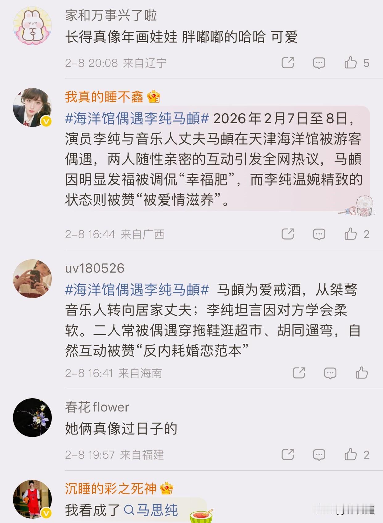 李纯马頔现身机场被偶遇,二人感情稳定,李纯大方和网友打招呼! 有网友在网上晒出一段视频,在北京机场偶遇了李纯和马頔! 李纯穿着牛仔裤配长款外套,素颜,整个人松弛感十足,还跟网友点头打招呼,很有礼貌,亲和力很强! 马頔牛仔裤配羽绒服,胖乎乎的,网友说一看到他就想起李纯在节目上说的话,她说马頔很可爱,像年画,有福气! 8号的时候还有网友在海洋馆偶遇他俩,两个人看起来很甜蜜,结婚以后,二人经常一同外出吃饭度假,感情甜蜜!希望他俩早生贵子! 李纯 李纯美照
