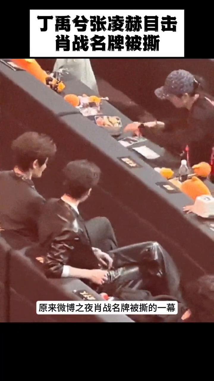 丁禹兮张凌赫目击肖战名牌被撕。 原来微博之夜肖战名牌被撕的一幕居然被丁禹兮和张凌赫看见了,摄像头完整地记录了这一幕。看见工作人员把肖战的名牌撕下来重新贴贴纸的时候,丁禹兮和张凌赫都忍不住低头偷笑了,估计他们都在心里无语,感觉他俩当天晚上可能就这个话题私聊了一个晚上。