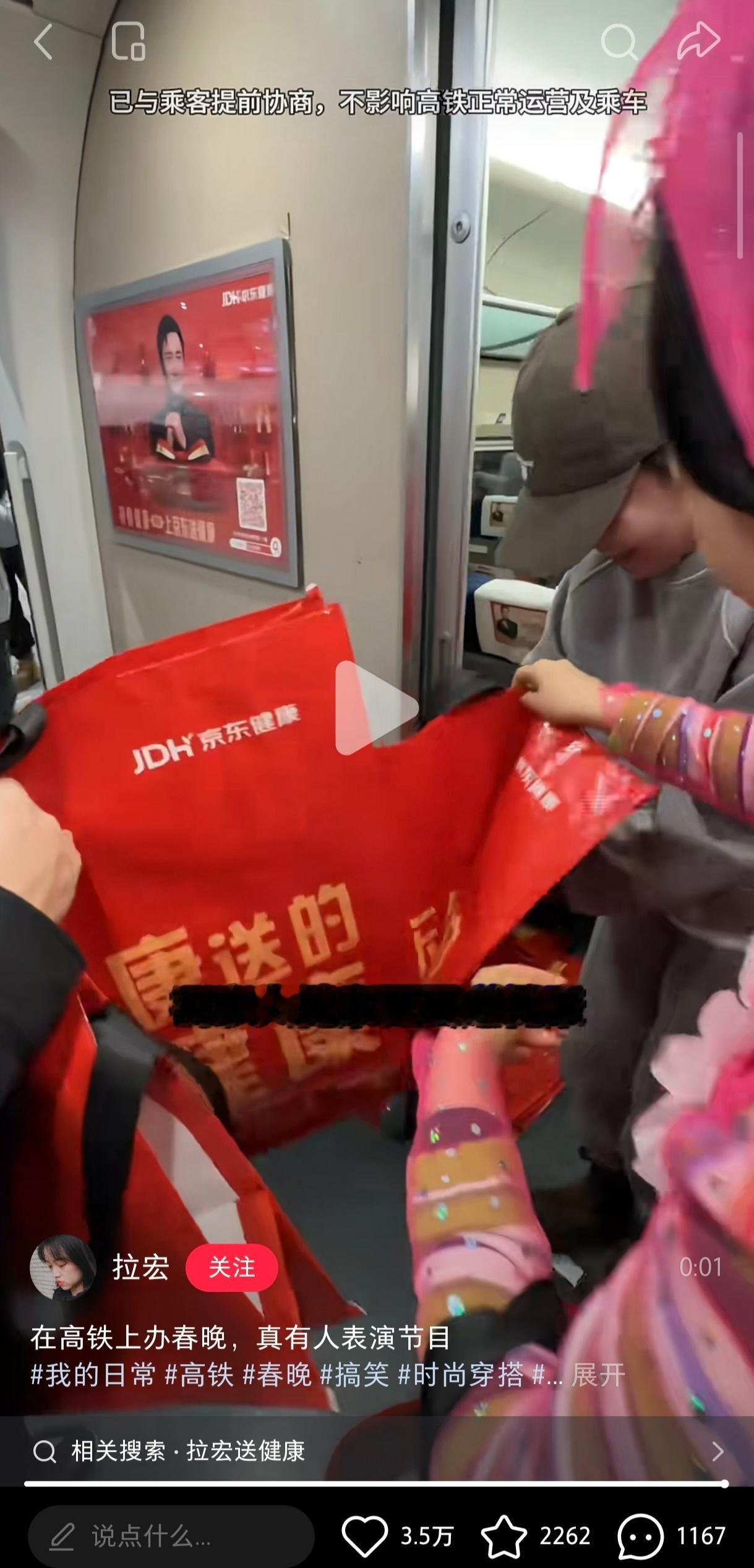 真的会被拉宏这种社交悍匪打动,看 拉宏高铁上开e人春晚感觉全世界都在陪她瞎闹。在静音车厢都能把春晚开起来,这感召力没谁了。以前过年总想买贵的,现在觉得像她这样送份京东健康大礼包最实在。春节的脚步近了,大家的健康年货都备齐了吗?🎁