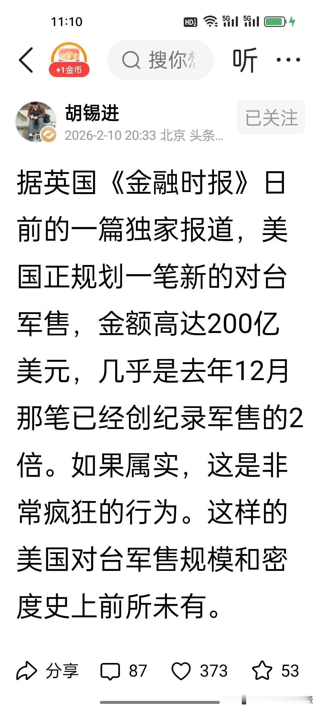 日本又干了两件铤而走险的大事!美日联手给台海埋雷,中方警告已在路上! 1. 据英国《金融时报》独家报道,美国正规划一笔高达200亿美元的对台军售,几乎是去年12月创纪录军售的2倍,规模和密度史无前例。 2. 与此同时,美日“铁拳”联合军演今日开启,最近点位距台湾仅110公里,美媒直言就是针对中国,重点演练“夺岛”,日本甚至出动了“夺岛部队”。 根据老胡透露,中方已明确告知美方,这笔军售可能会影响特朗普4月访华,要求美方慎重处理。 这些动作释放的信号再清晰不过:美日正试图用军事威慑和对台军售,把台湾变成遏制中国的棋子。但他们忘了,中国的军事实力早已今非昔比,解放军对台形成压倒性优势,任何“以武谋独”的企图,在绝对实力面前都不堪一击。