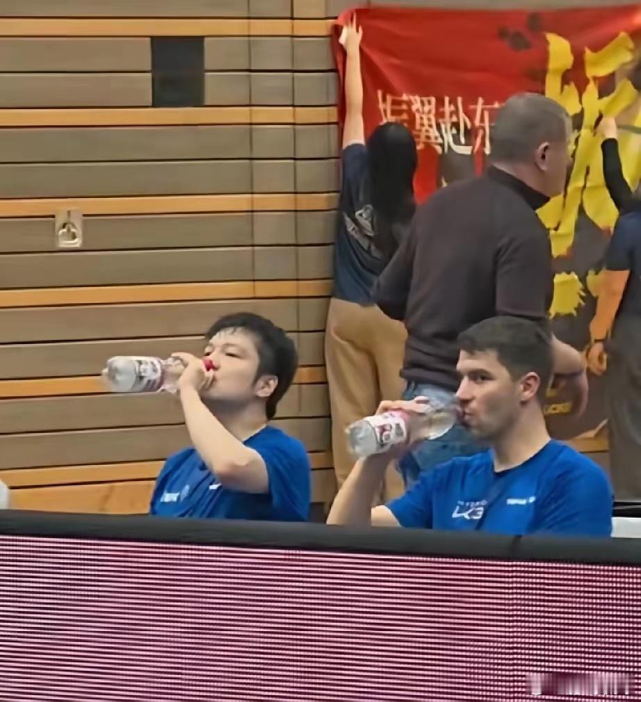 樊振东3比1库比克樊振东代表萨尔布吕肯俱乐部出战德甲联赛,首盘比赛3-1战胜库比克。比赛结束后回到座位休息,看到队友弗朗西斯卡拿出一瓶水,樊振东盯着小弗打开盖子的瞬间,顺到自己手里喝起来!弗朗西斯卡还宠溺的笑了!东哥与俱乐部队友相处非常融洽,大家可以开玩笑,可以并肩作战,这也是难得的东哥可以享受的来自团队爱与温暖!