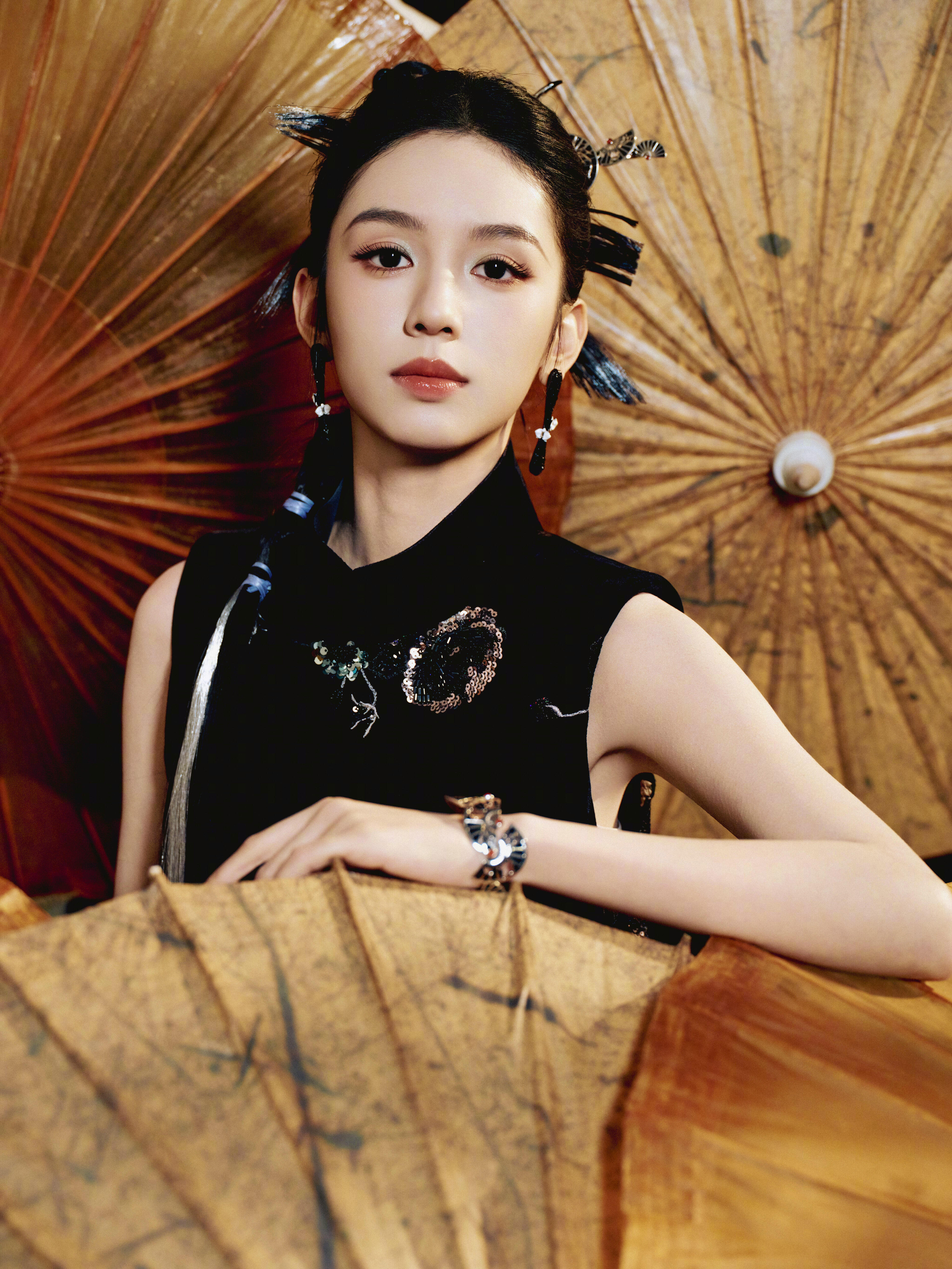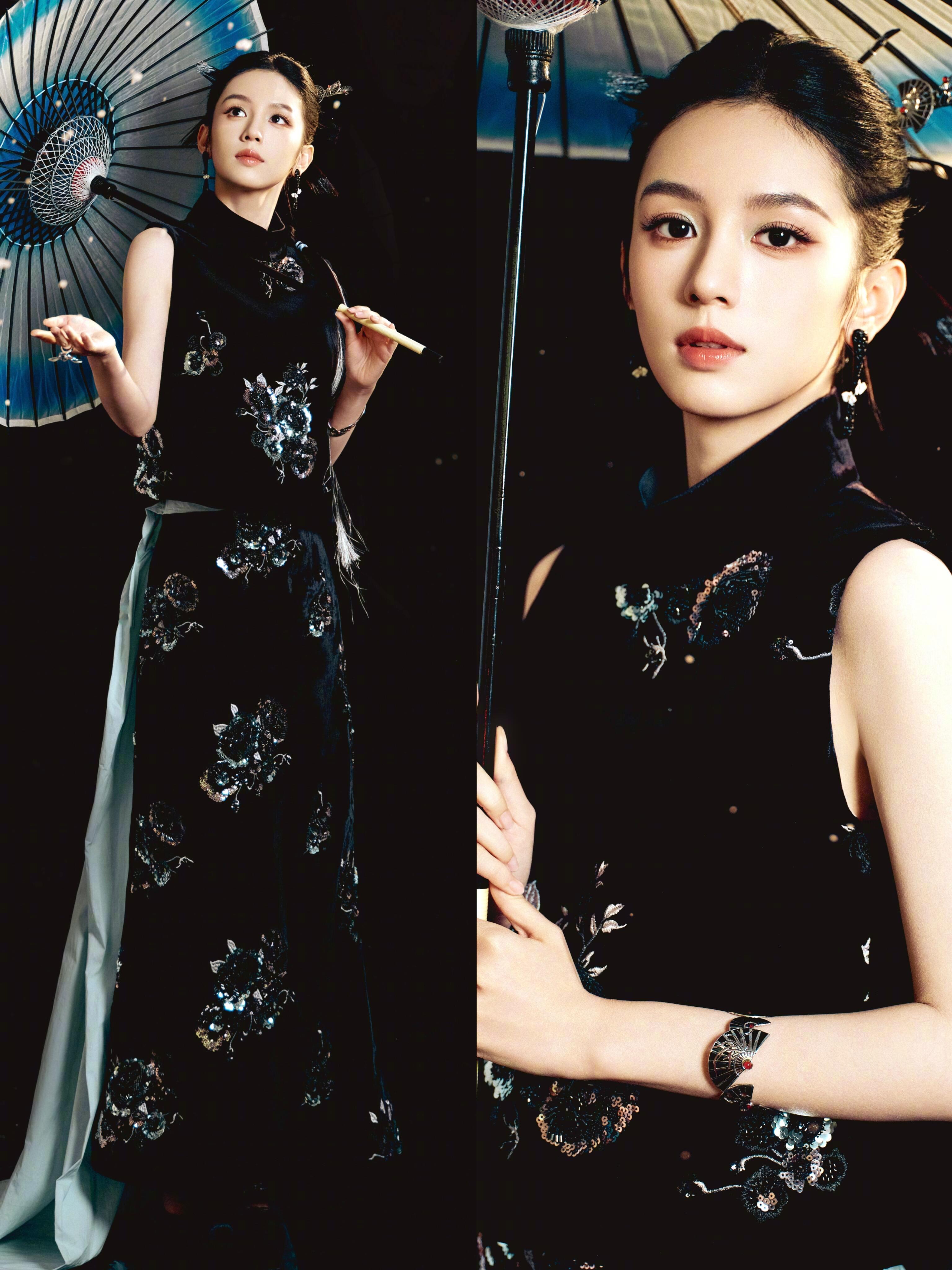 周也身着黑色国风新中式造型,亮相央视网络春晚。利落的盘发与水墨妆容,搭配油纸伞道具,完全是古城里走出来的冷艳水墨美人,太有氛围感了