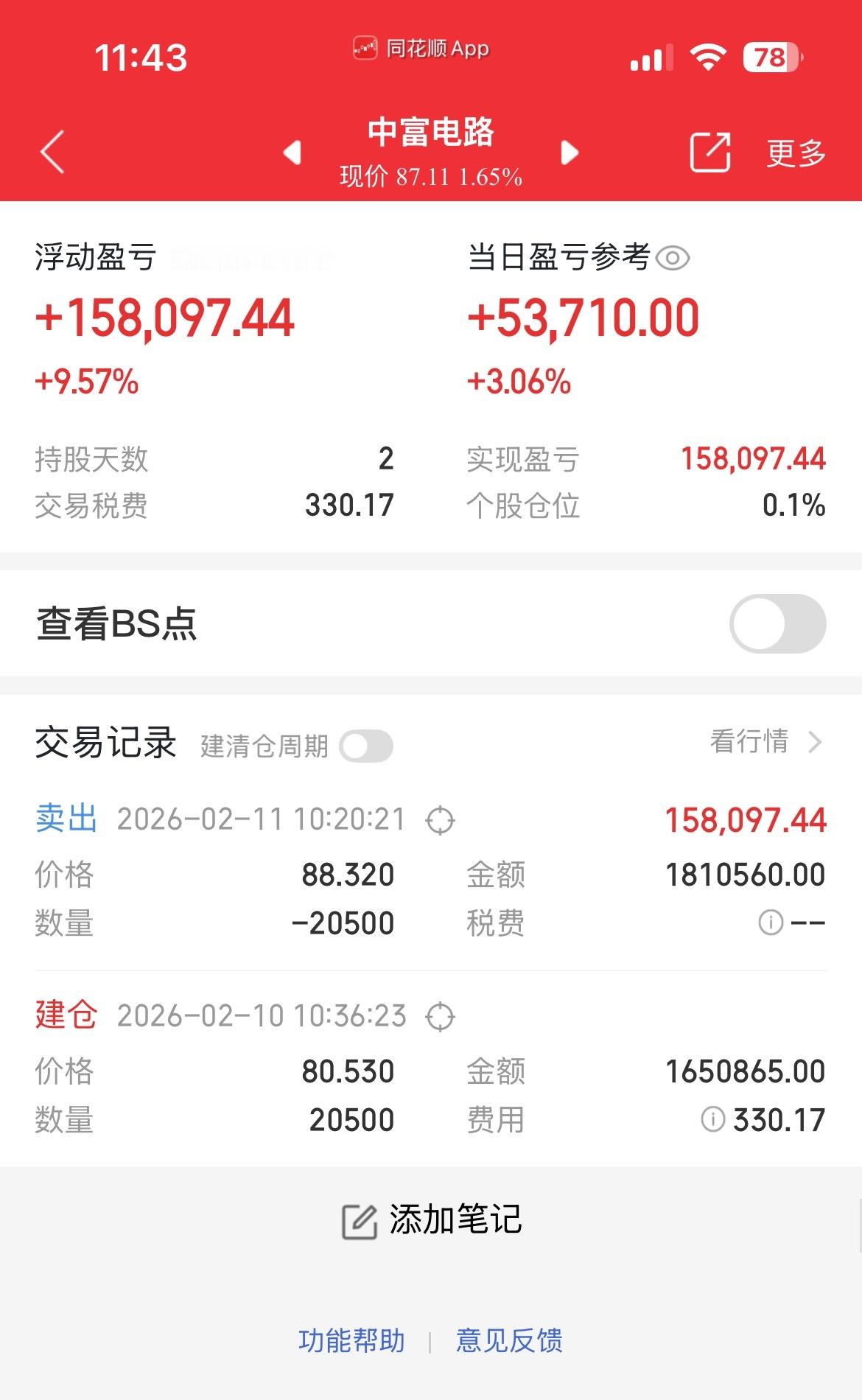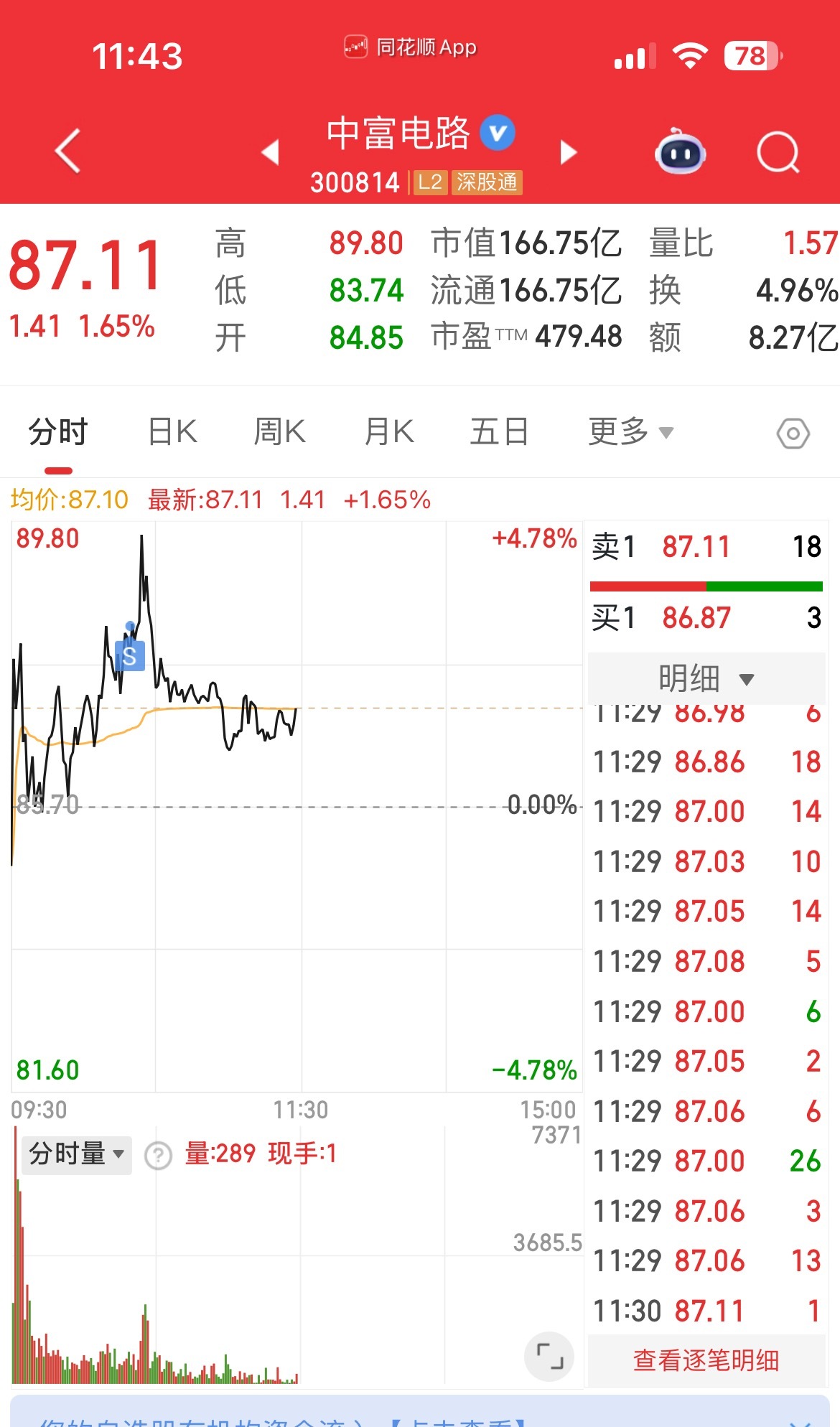 持仓更新!$中富电路sz300814$跑了今日看盘