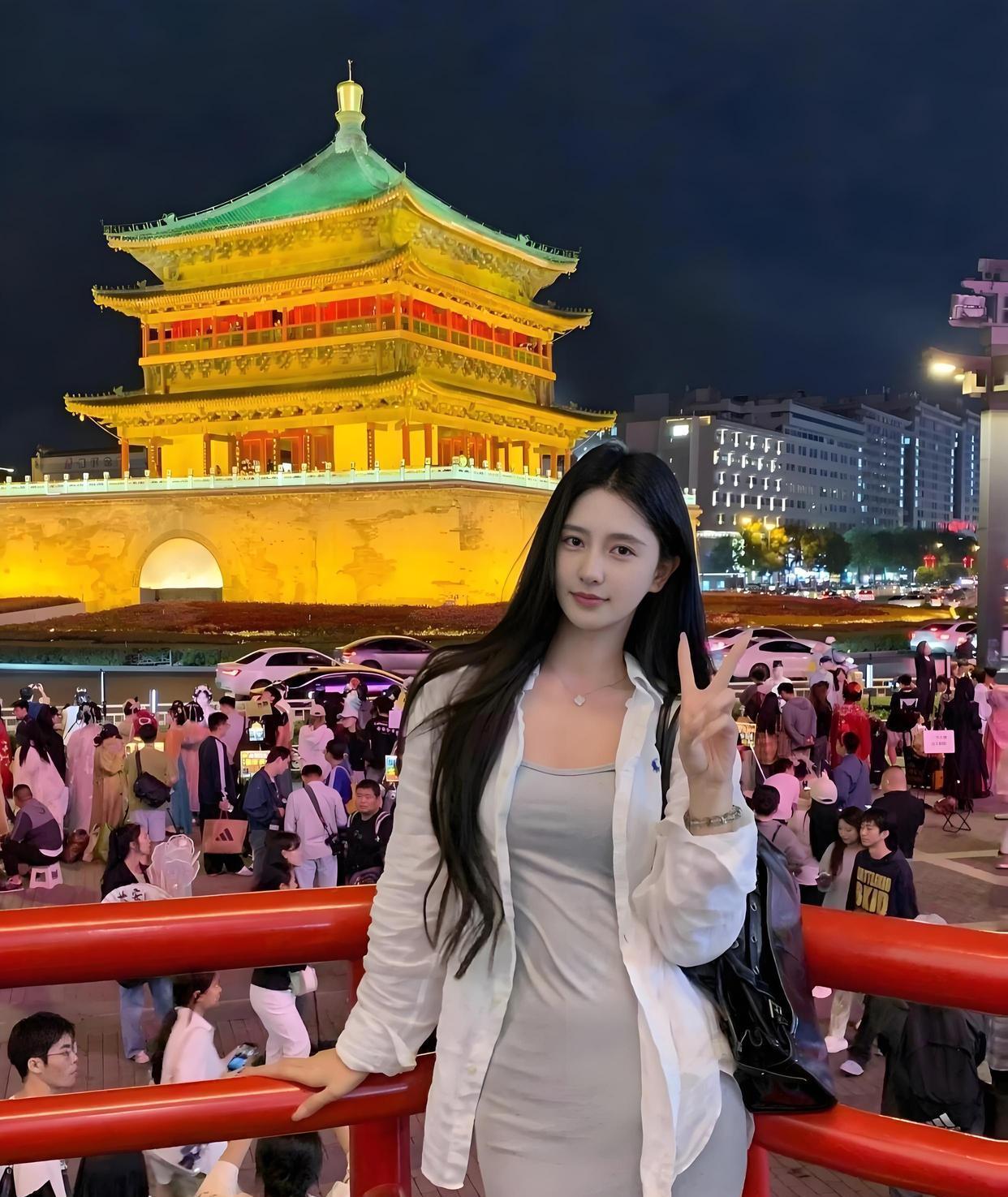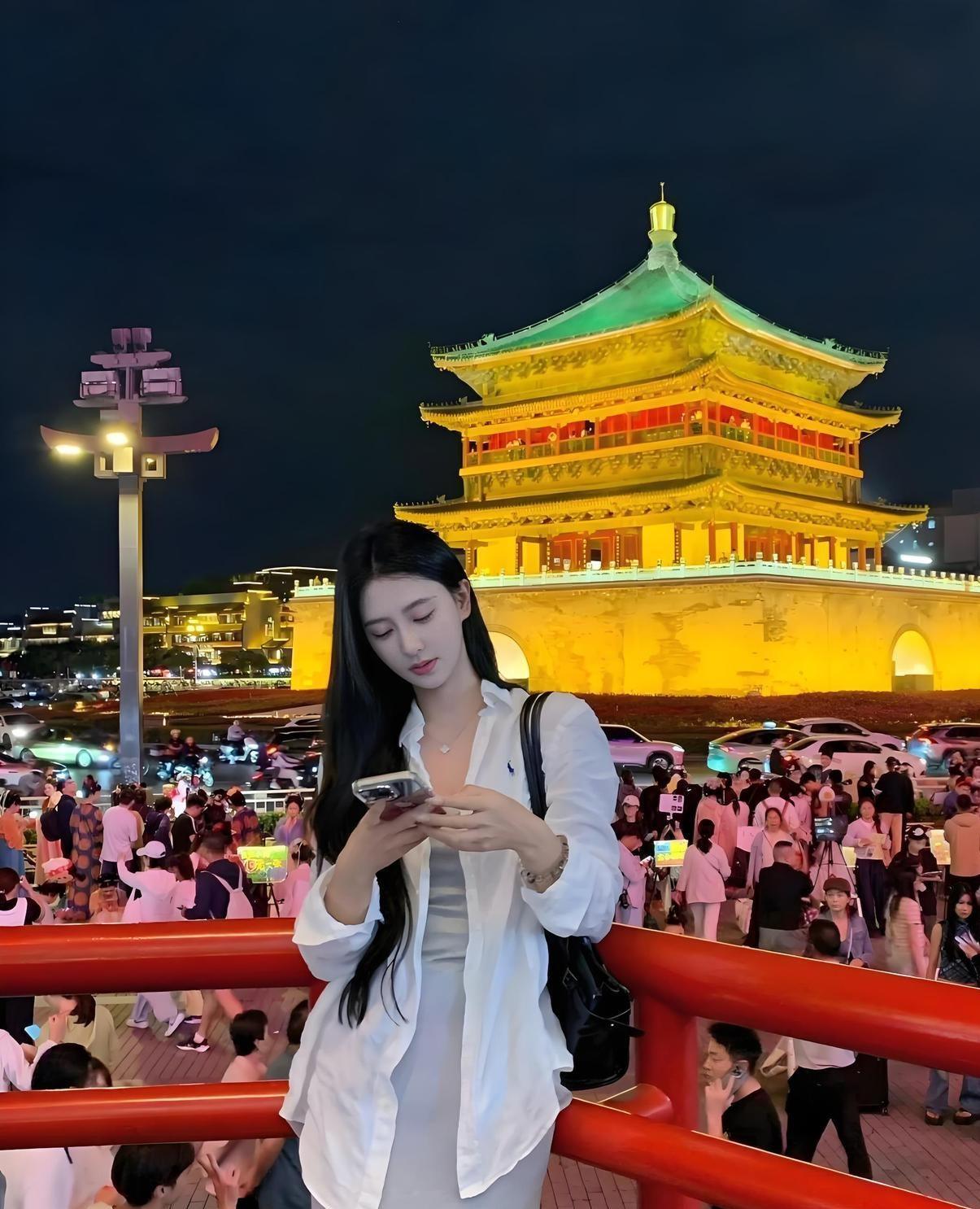 :此情此景,又想吟诗一首:“惊鸿一瞥现古镇,一眼万年恋已深;身着霓裳虽不潮,含情