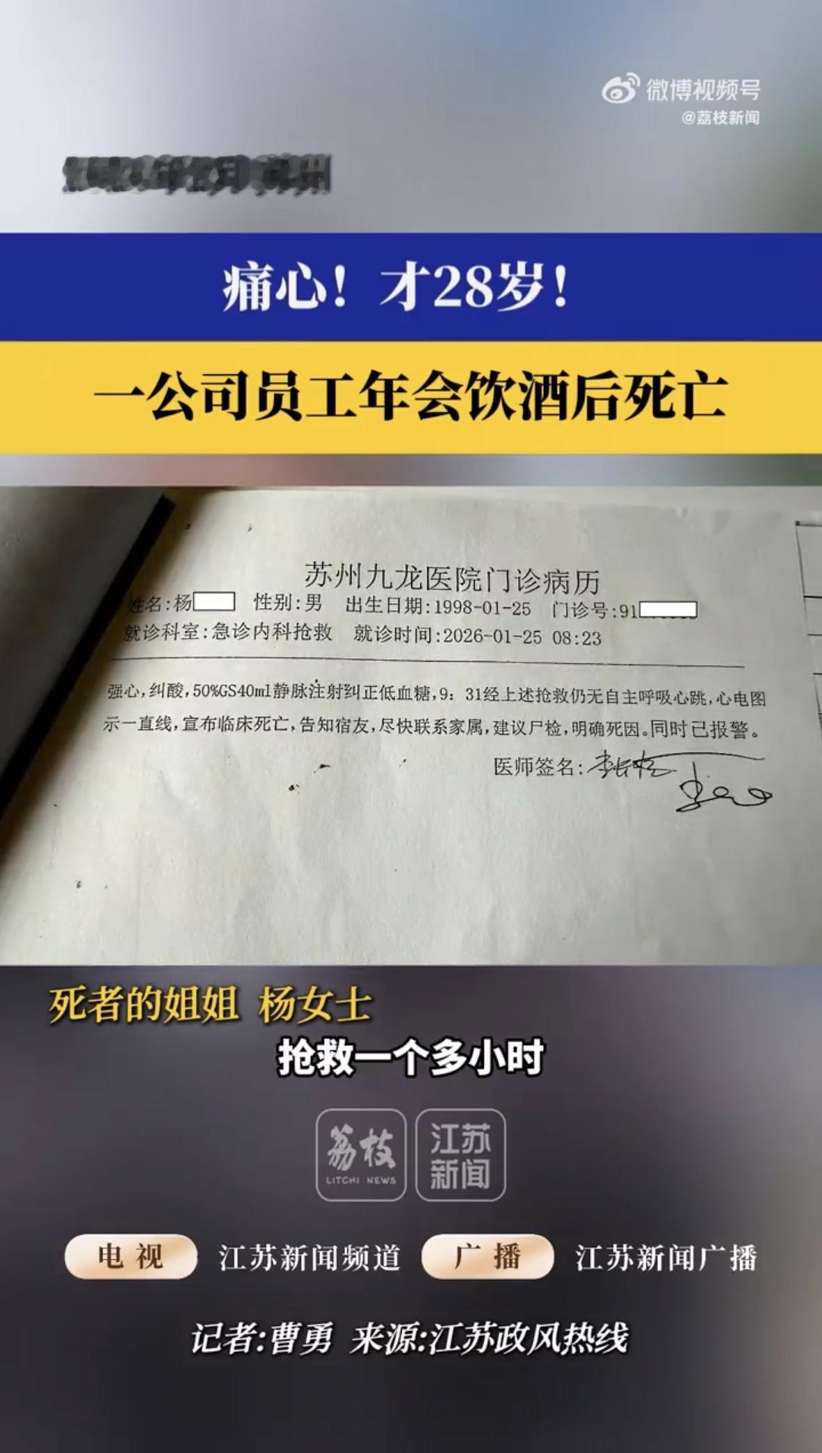 昨天还举杯庆祝,今天却天人永隔。28岁小伙子,公司年会上喝得烂醉,被同事送回宿舍,第二天人就没了。心脏骤停,一条鲜活的生命戛然而止。 家属痛心质问:为什么喝酒时不拦着?为什么不直接送医院?公司表示很委屈:酒席没人劝,醉了也送回了宿舍,愿意给点补偿,但觉得自己责任不大。 年轻人在外打拼,过年聚会喝点酒本是常事。可酒这玩意儿,真得量力而行。我自己也见过太多逞强喝倒的,场面吓人。公司组织聚餐,提供酒水,那份“照顾义务”不仅仅是把人送回宿舍。看到他都不省人事了,如果安排人稍微看护一下,可能结局完全不同。 这不是找谁追责,而是给所有人提个醒:聚会高兴可以,但安全永远是第一。公司要有温度,同事间也要多关照。那点所谓的人道补偿,换不回一个儿子的生命,一个家庭的希望。愿这样的悲剧,再也不发生了。