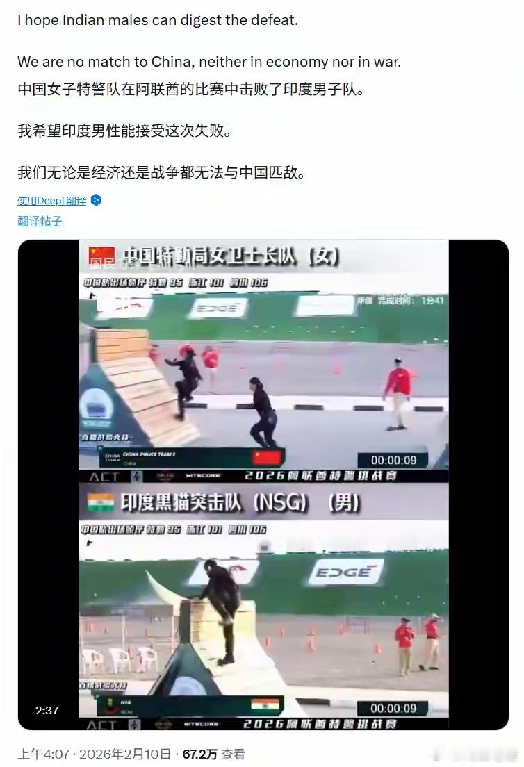 黑猫突击队被中国女警吊打,阿联酋特警挑战赛为啥让印度人破防?