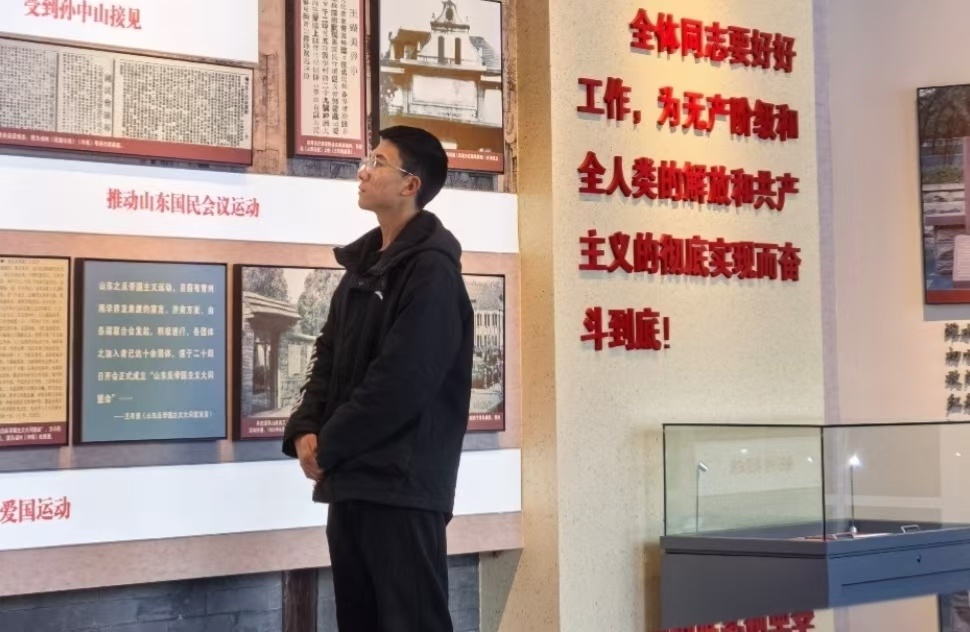 秦岭笑谈 【浴血山河铸忠魂,抗日烽火照征程】曲阜师范大学感悟中的三下乡大学生寒假社会实践 寒假期间,满怀对英勇革命先烈的敬意,曲阜师范大学计算机学院 “故园追党忆,文韵续初心” 实践队,在2月11日踏上了前往诸城市枳沟镇北杏社区王尽美烈士纪念馆的社会实践之旅。王尽美烈士纪念馆坐落于诸城市枳沟镇北杏社区,这里曾经是王尽美烈士的故居,是王尽美烈士生活了20余年的地方。纪念馆也分布在王尽美烈士家中的每一个宅院内。跨进王尽美烈士故居,仿佛见证了一位伟大之人是如何一步步成长的,里面没有奢侈的玩物,能看见的只有王尽美烈士曾经读过的书籍,比如《新青年》这本对所有中国青年意义重大的书籍,在当时,王尽美烈士肯定也是爱不释手的。王尽美烈士的家并不是很大,建造房屋的材料只是黄土和茅草,可见王尽美烈士的家境并不是很富裕,但是他却能抽出为数不多的钱来买红色书籍,可见王尽美烈士的爱国之心是十分强烈的。1898年,王尽美烈士出生于山东莒县(今属诸城)一个贫苦农民家庭。清末民初的中国,山河破碎,民不聊生,帝国主义的侵略与封建军阀的压迫在他心中埋下了救国救民的种子。辛亥革命的枪声、进步书刊的启蒙、让他逐渐觉醒。俄国10月革命的胜利,更让他看到了民族复兴的希望。1918年,他毅然告别家乡,登上村前南岭,以“沉浮谁主问苍茫,古往今来一战场”的豪情踏上求学之路,誓要寻找改造中国的真理。在济南省立第一师范求学期间,王尽美烈士积极投身五四运动,发起组织励新学会,主编《励新》半月刊,向青年学子传播进步思想。1920年,他与邓恩铭等人组建马克思学说研究会,秘密筹备山东共产党早期组织,1921年7月,王尽美烈士作为山东代表,赴上海出席中国共产党第一次全国代表大会,亲历了中国共产党成立这一开天辟地的大事变。会后,他将原名王瑞俊改为王尽美,以“尽善尽美”的理念信仰,全心全意投身革命事业。回到山东后,王尽美烈士成为党组织的核心领导者,1922年,他先后出席党的二大、远东各国共产党及民族革命团体第一次代表大会,参与起草的《劳动法大纲》成为党指导工人运动的重要纲领。他奔走于齐鲁大地,在济南、青岛、淄博等地建立党组织,办理《济南劳动周刊》,把革命火种播撒到工厂矿山。山海关京奉铁路工人大罢工、青岛胶济铁路工人大罢工、日商纱厂工人大罢工,在他的领导下,山东工农运动风起云涌,让反动势力闻风丧胆。长期的忘我工作与艰苦生活,让王尽美烈士积劳成疾,患上严重肺病,即便咳血昏倒,他仍拒绝党组织的住院安排,坚持往返于济南、青岛之间开展工作。1925年8月,病榻上的他已极度虚弱,却依然向青岛市委负责人口授遗嘱,全体同志要好好工作,为无产阶级和全人类的解放和共产主义的彻底实现而奋斗到底。8月19日,这位中共一大代表中最早辞世的革命者在青岛医院溘然长逝,年仅27岁。从求学立志到建党兴邦,从领导工农运动到投身统一战线,王尽美烈士用27年的人生诠释了中共共产党人的初心使命,他坚定的信念、务实的作风、无私的奉献,如同不灭的火炬,照亮着民族复兴的征程,今天我们缅怀王尽美烈士,就是要传承红色基因,汲取奋进力量,在新时代的战场上续写“尽善尽美”的时代华章。撰稿人:纪南君队伍名称:“故园追党忆,文韵续初心”实践队指导老师:孙泽玮