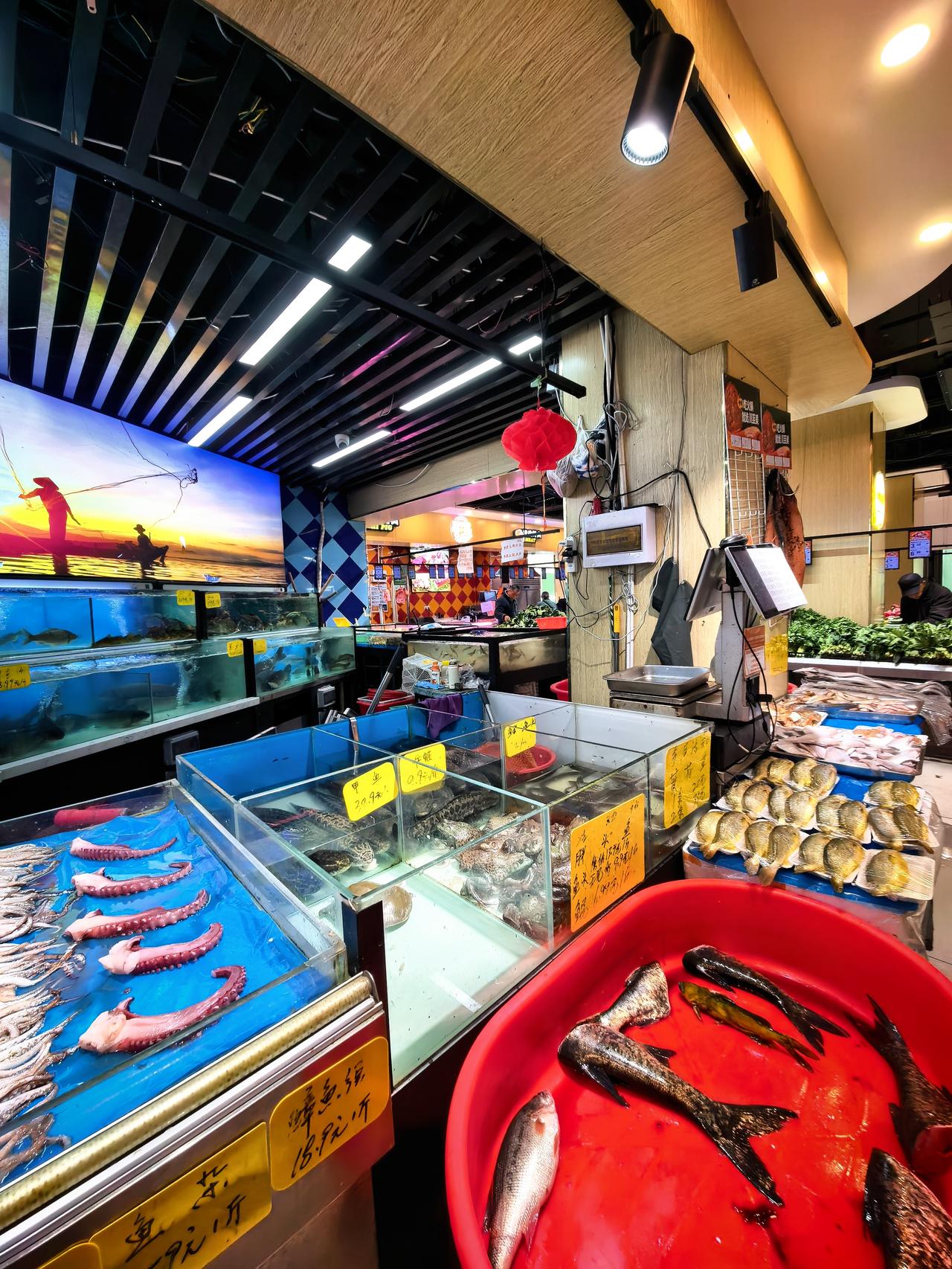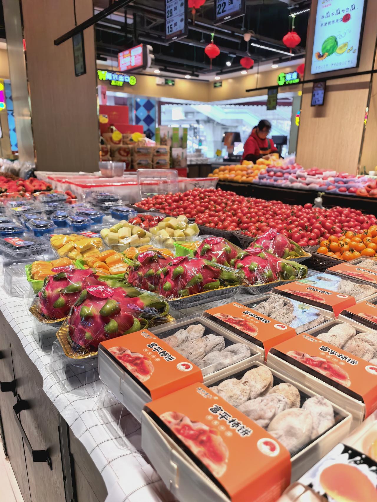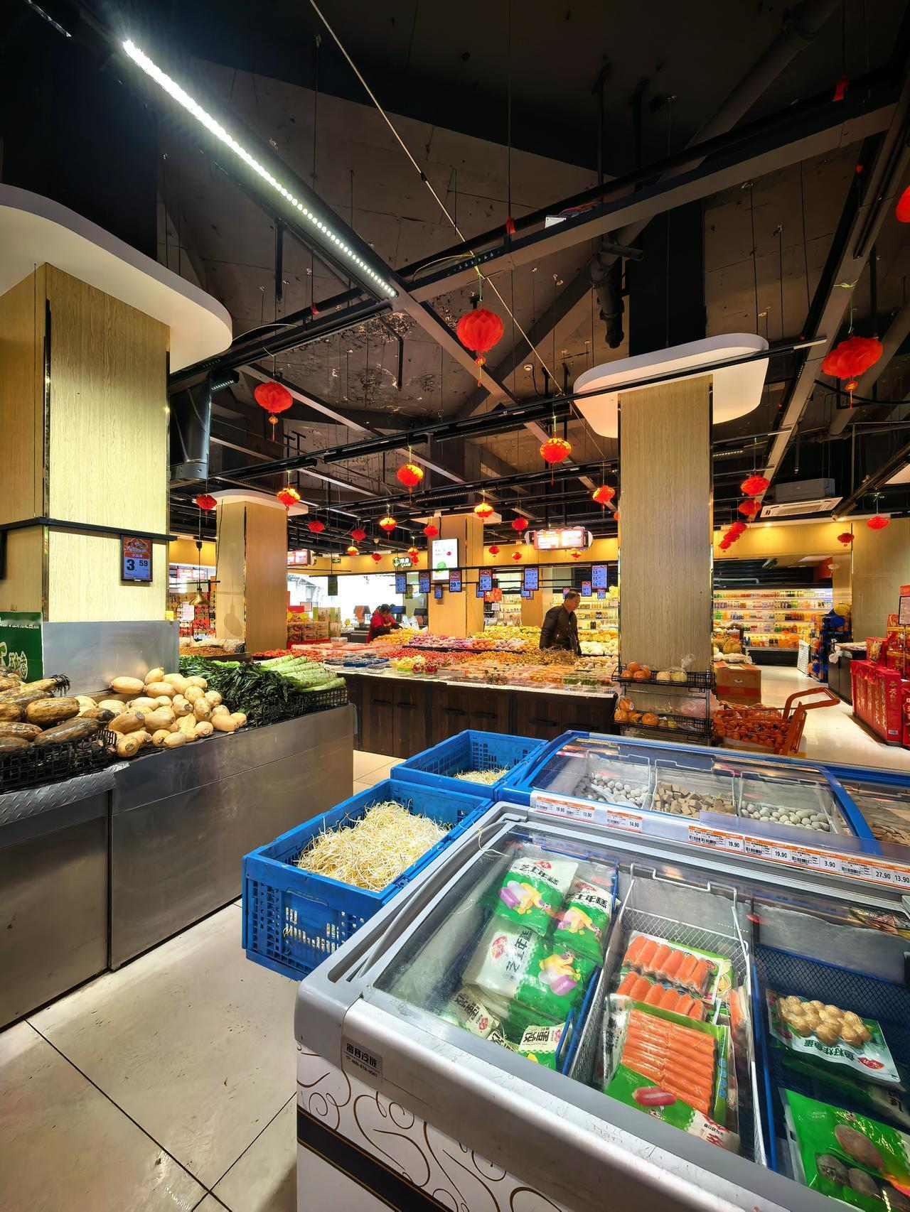 过节的时候繁荣的小区超市,生鲜超市。