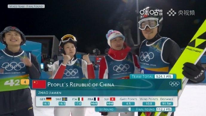 米兰冬奥会跳台滑雪混合团体比赛中,中国队的曾坪、宋祺武、刘奇、赵嘉文四人在团体比赛中,配合默契,表现出色。在第一轮以第7的名次的成绩,进入决赛。这也我国在这个项目的历史上首次拿到这样的名次。决赛中拿到463.6分,两轮总分924.1分最终以排名第8的成绩完成比赛。突破就是胜利,进步就已经非常了不起,未来一定更好,恭喜四位!跳台滑雪混合团体中国队创历史中国跳台滑雪再创历史