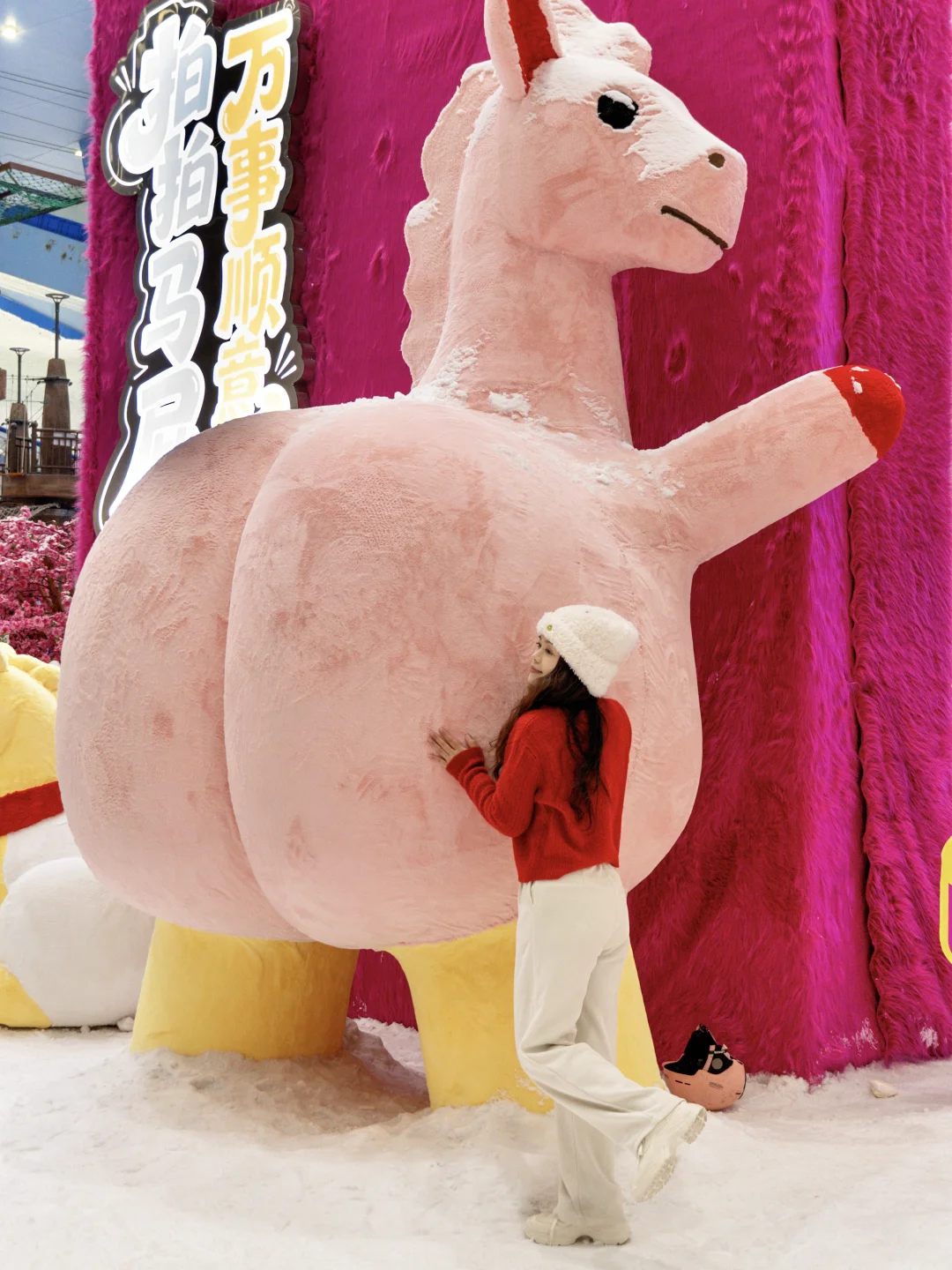 ▫“拍马屁”巨型互动装置整个粉粉哒,拍拍马屁收获一波新年好运