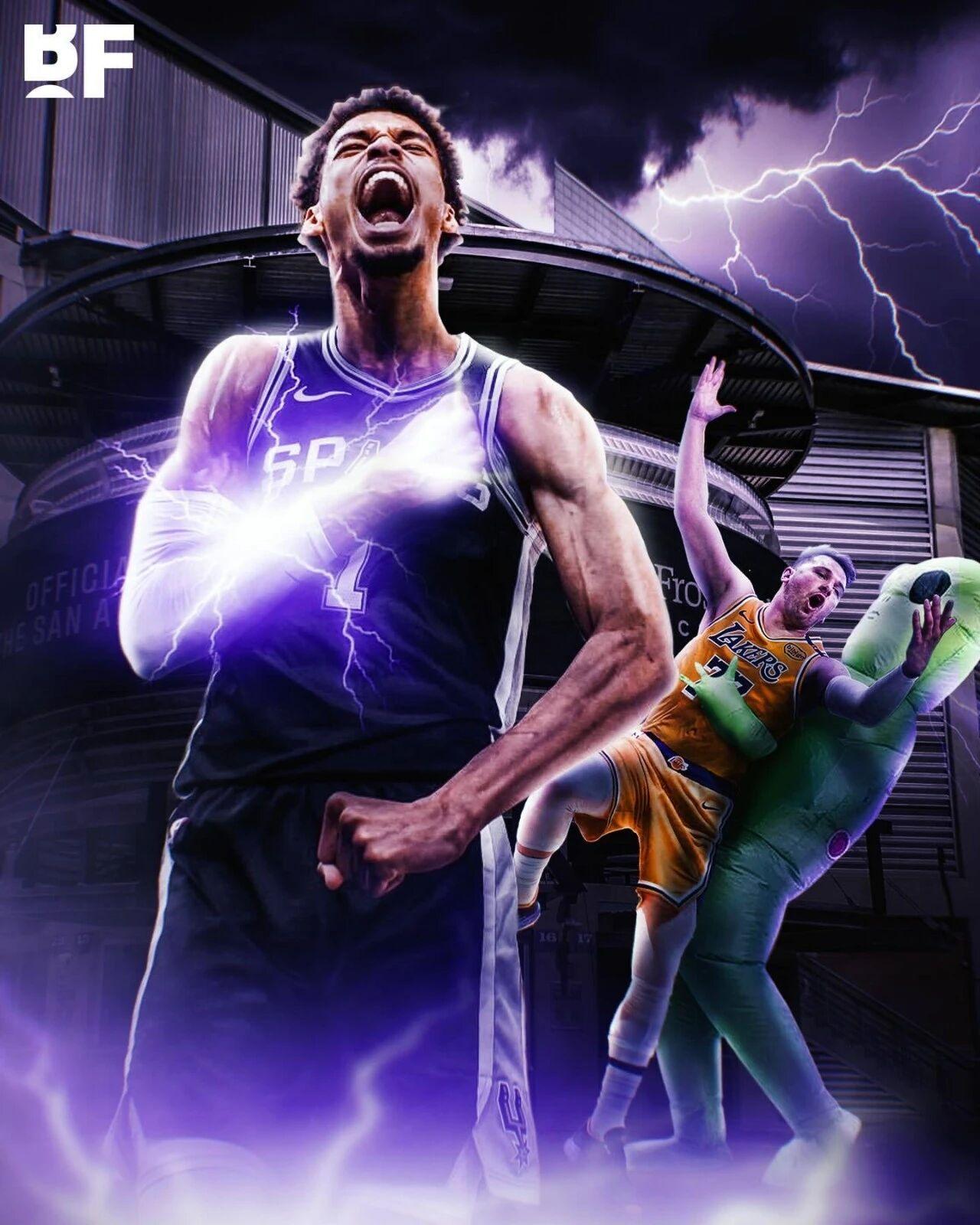 外星人--文班亚马接管比赛首节就失去悬念! 马刺136-108大胜湖人,比赛第一节文班就砍下25分。投篮20投13中,三分6中4,罚球12中10,全场轻松砍下40分12板2助2断1盖帽!这是文班生涯第6次40+,超过邓肯(5次),和吉诺比利并列队史第四。属于文班的时代来了。