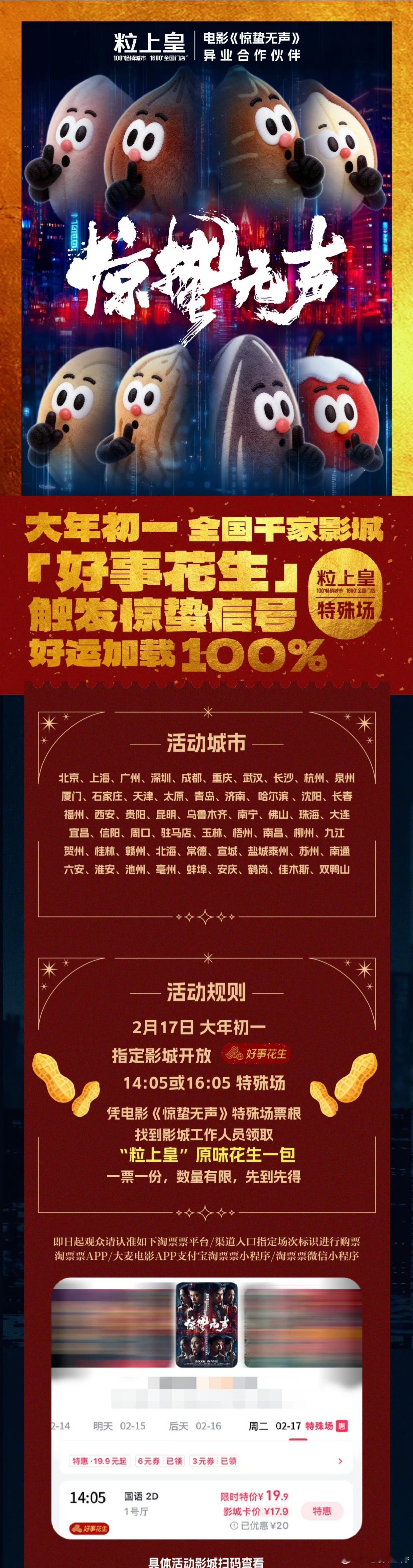 听听温特怎么说 电影《惊蛰无声》 「好事花生」特殊场,影城花生收到了还不少。 记得之前有些电影送啤酒,前两年春节有电影送过玫瑰还有喜糖。