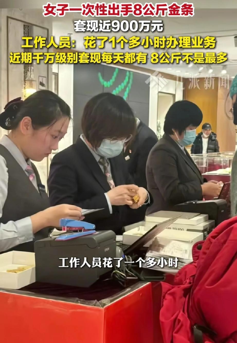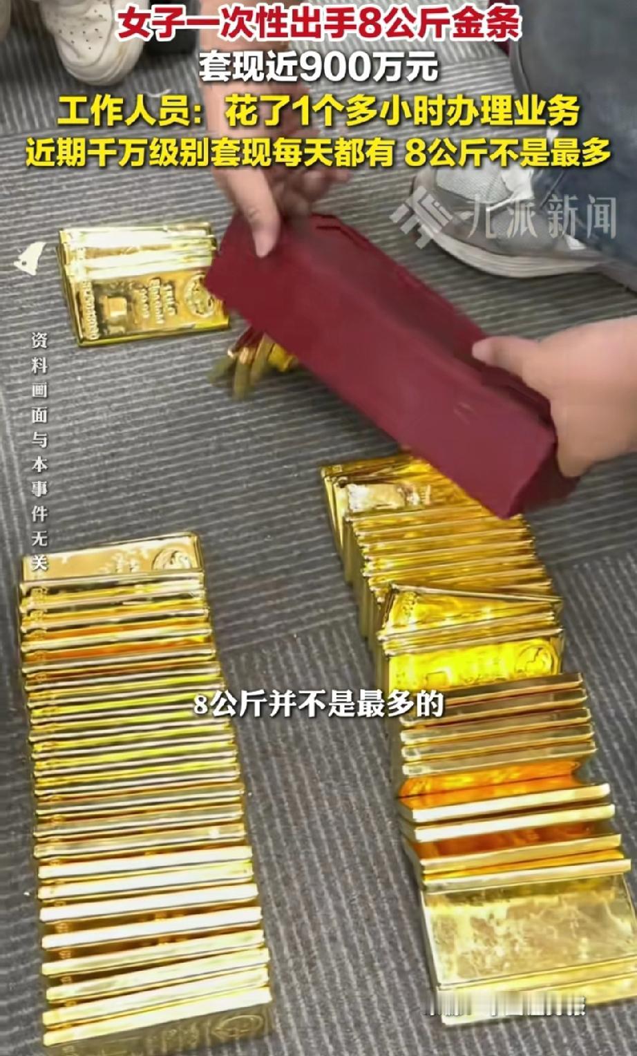 羡慕哭了!北京菜百首饰总店,王女士一次性卖出8公斤金条,扣除手续费后成功套现近9