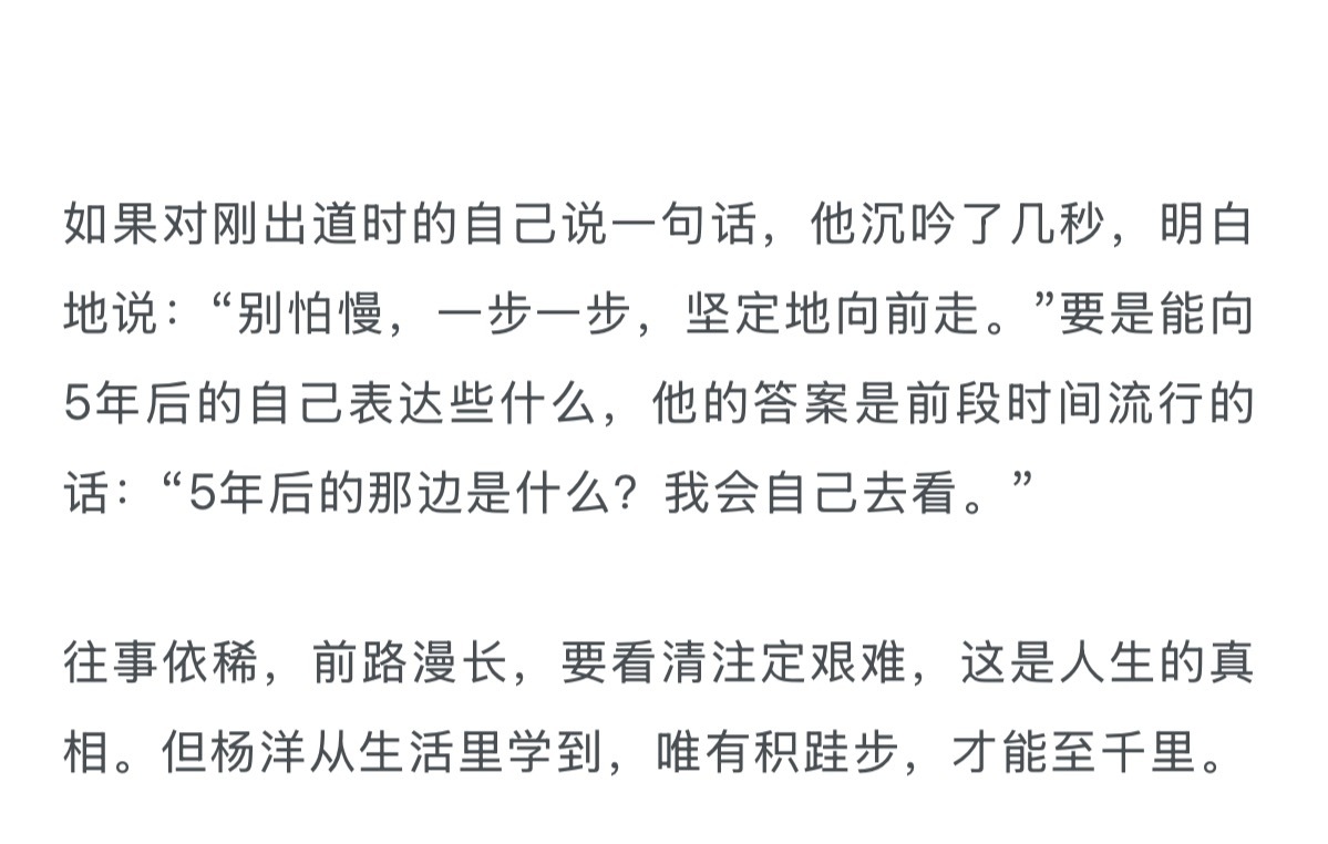 “别害怕,一步一步坚定的向前走。”“五年后那边是什么,我自己会去看。”