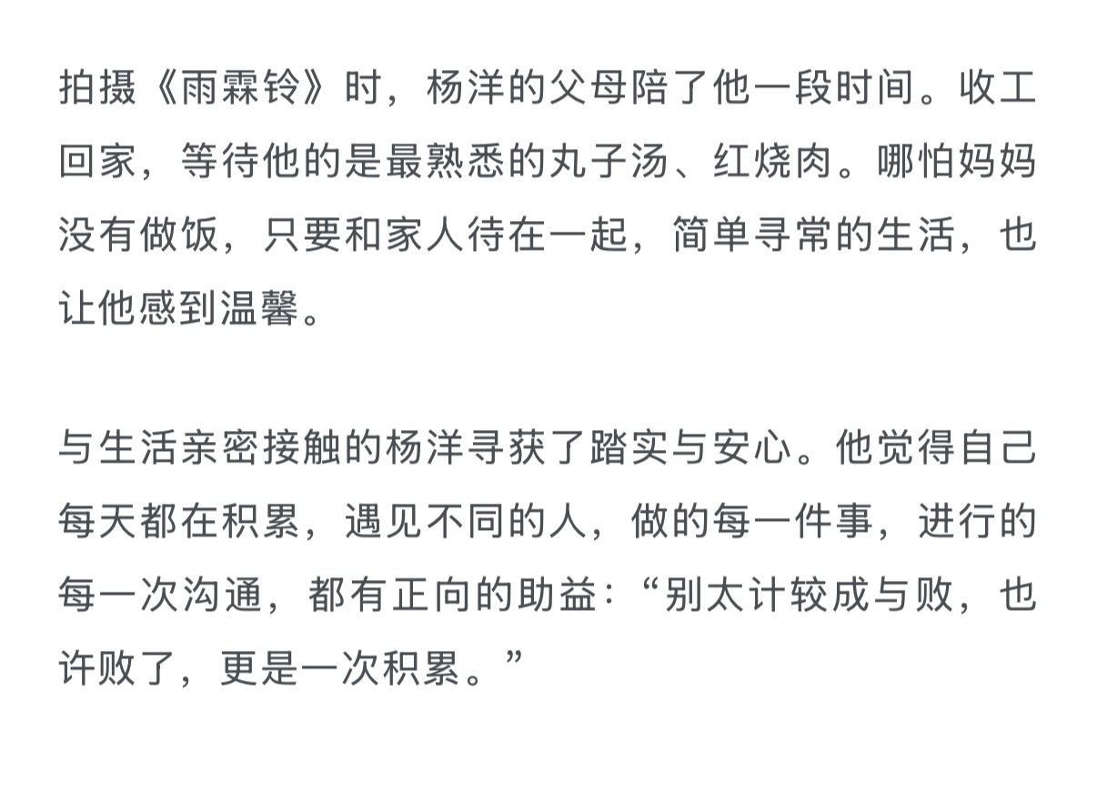 但你以为这就是杨洋的美妙?不,幸福在杨洋身上有一种不被世俗传统认知束缚的自由感,去感受辽阔的世界是幸福的,回家吃一顿妈妈做的丸子汤也是幸福的。我被戳了一下。