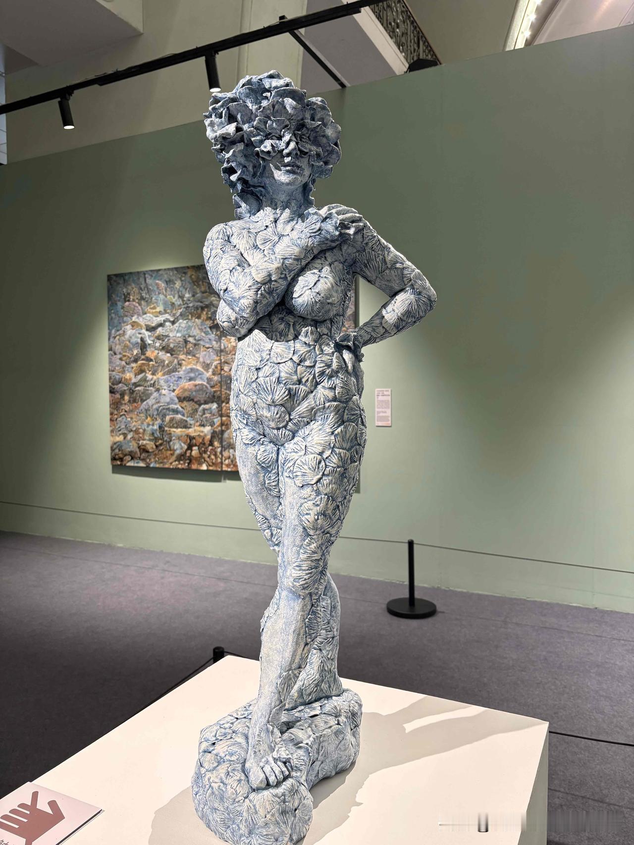 前几天参观了北京国际美术双年展,作品还是很有味道。图1知觉的森林,色彩魔幻艳丽,粉色的树枝呼应粉色的动物,奇幻明艳,有一种打破常规的视觉冲击力;图2是有油画和工笔风格的中国画,全部采用灰色调,笔触灵动安详,体现另类的国画治愈之风;图3是一个雕塑,以古典女性姿态为基础,用类似自然生物的纹理覆盖身体,模糊了人类与自然的界限。它打破传统对女性身体“光滑与完美”的审美,呈现出一种介于美与异化之间的形态,带有一种后人类意味。
