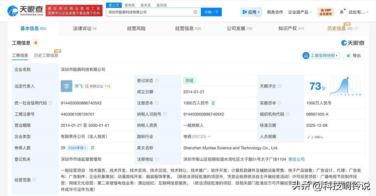【揭秘Seedance2.0背后AI关联公司 Seedance已被申请为商标】海外已夸爆Seedance2.0 据媒体报道,近日,字节跳动内测的AI视频模型Seedance2.0意外引爆全球关注,其“文本生成多镜头电影级视频”的能力被业界称为“导演级AI”。相关话题引发热议。公开信息显示,Seedance2.0是字节跳动旗下即梦AI开发的AI视频生成模型。 天眼查工商信息显示,即梦AI关联公司深圳市脸萌科技有限公司成立于2014年1月,法定代表人为李飞,注册资本1000万人民币,经营范围含软件开发、计算机软硬件及辅助设备零售、电子产品销售、动漫游戏开发、广播电视节目制作经营、网络文化经营等。股东信息显示,该公司由字节跳动旗下北京星云创迹科技有限公司全资持股。 知识产权信息显示,“Seedance”已被申请注册为商标,申请人包括广州某生物科技公司、上海某文化传播公司等,国际分类为日化用品、服装鞋帽、科学仪器、设计研究等,当前部分商标已注册成功。 天眼查信息: