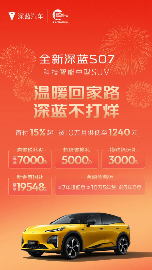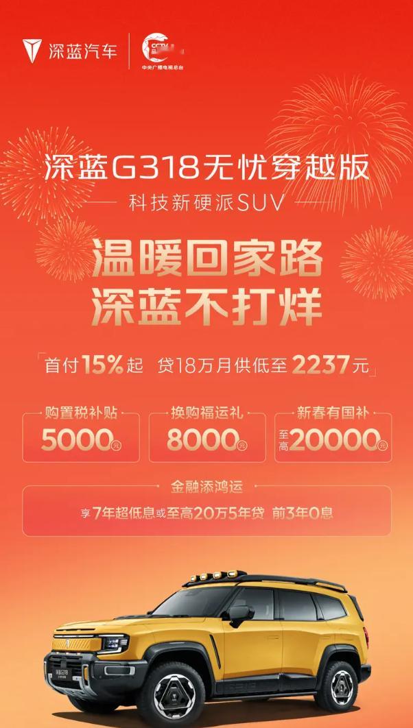 车若初见 深蓝汽车春节活动,大家瞅一瞅,有7年低息,有国补红包,全系基本都覆盖了,每台车型的力度不一样,给大家上图了,可以参考下哈。讲道理,这时候买新车还挺合适的,要让我选,高低还是大9系舒坦,大家新年有换车计划吗?准备下手哪款车型?