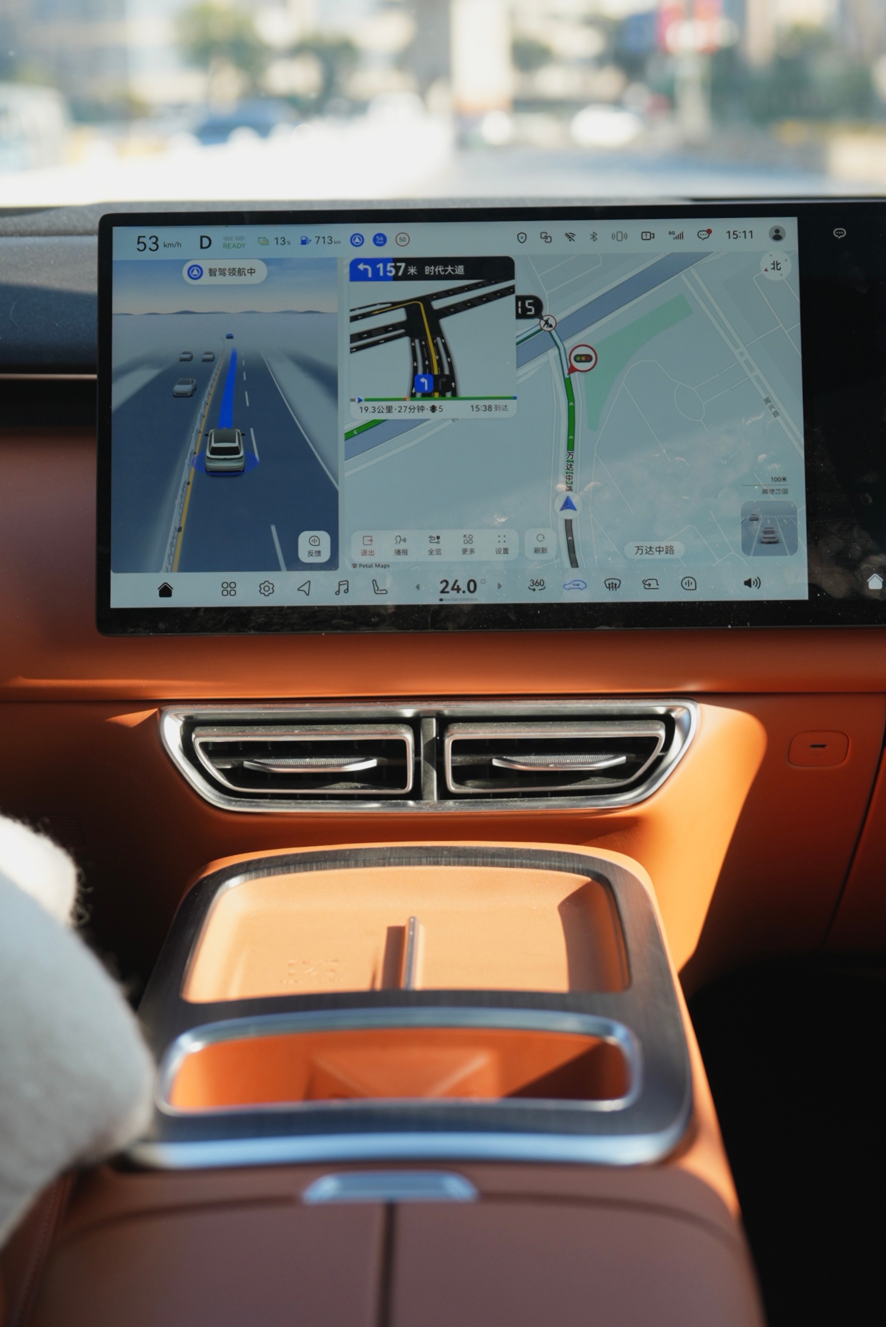 一上高速就开启 【华为乾崑智驾】。开启高速领航辅助。它稳稳地帮我跟车、控速,长途驾驶的疲劳感被大大缓解,我终于能更从容地享受旅途——大女主的方向盘,自己掌握,但旅程可以更轻松。